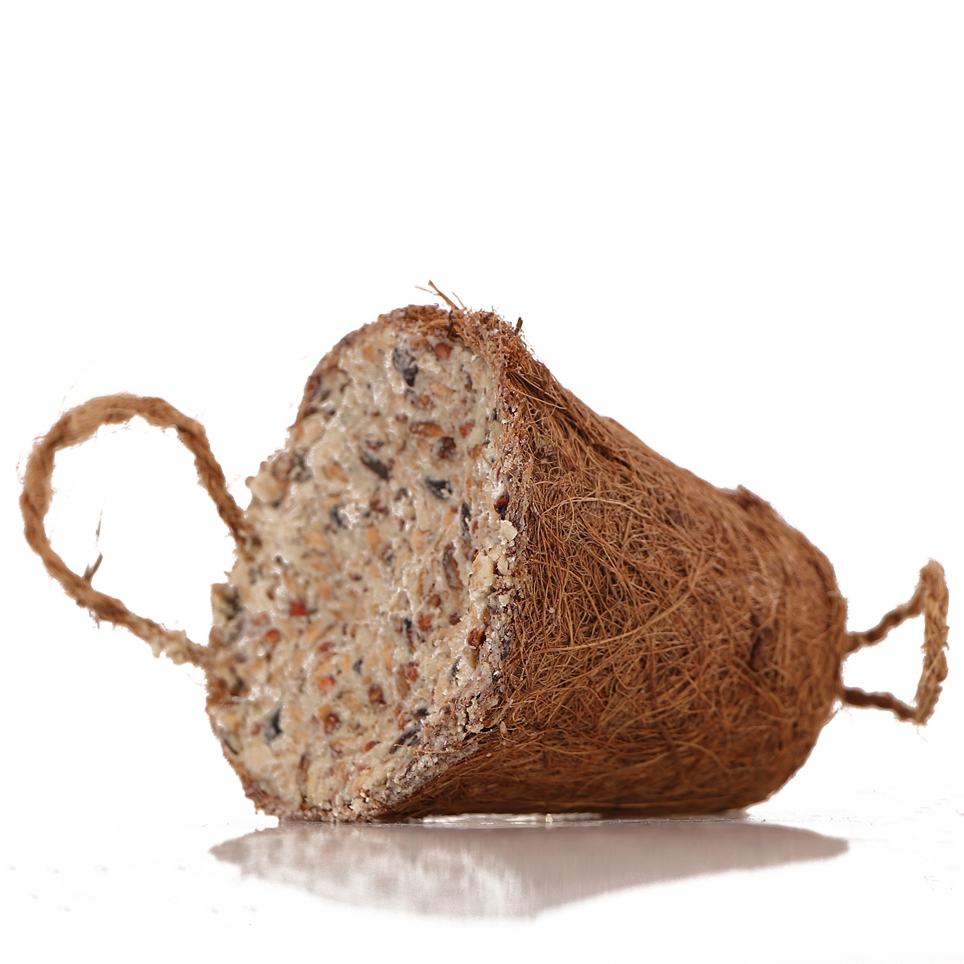 Całość zamknięta jest w włóknie kokosowym, które jest całkowicie odporne na warunki atmosferyczne, nie gnije nie pleśnieje i jest wyjątkowo wytrzymałe. Dodatkowo, ułatwia żerowanie i uchwyt ptakom.