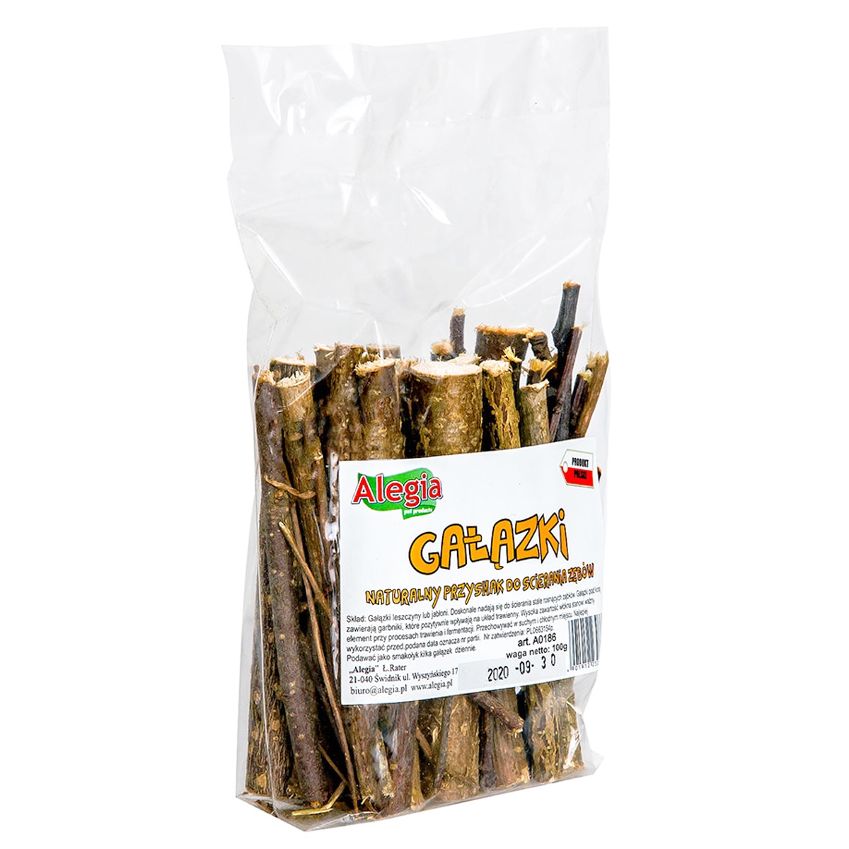 Alegia gałązki dla gryzoni to smakowity naturalny przysmak który wspiera naturalny proces ścierania siekaczy u gryzoni i królików, a do tego dostarczy zajęcia na długi czas. Jest to także nieocenione źródło naturalnych witamin oraz składników mineralnych. Ponadto zawiera dużo włókna które jest niezbędne do utrzymania odpowiedniej mikroflory jelita u królików i gryzoni. Zawierają także solę mineralne oraz pierwiastki śladowe a także witaminę C.
