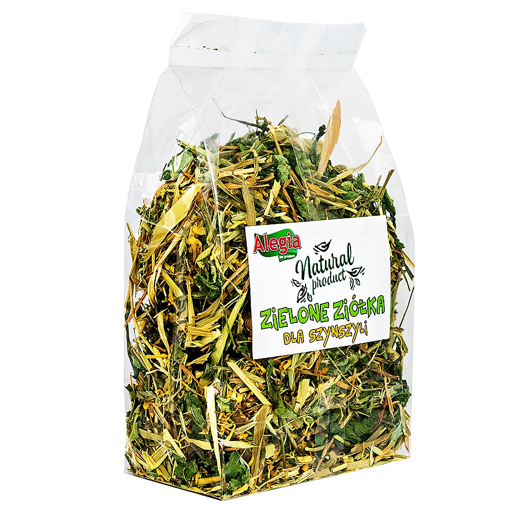 Specjalnie przygotowane ziółka dla szynszyli, zawierające naturalne witaminy z grupy A, B, C oraz D.