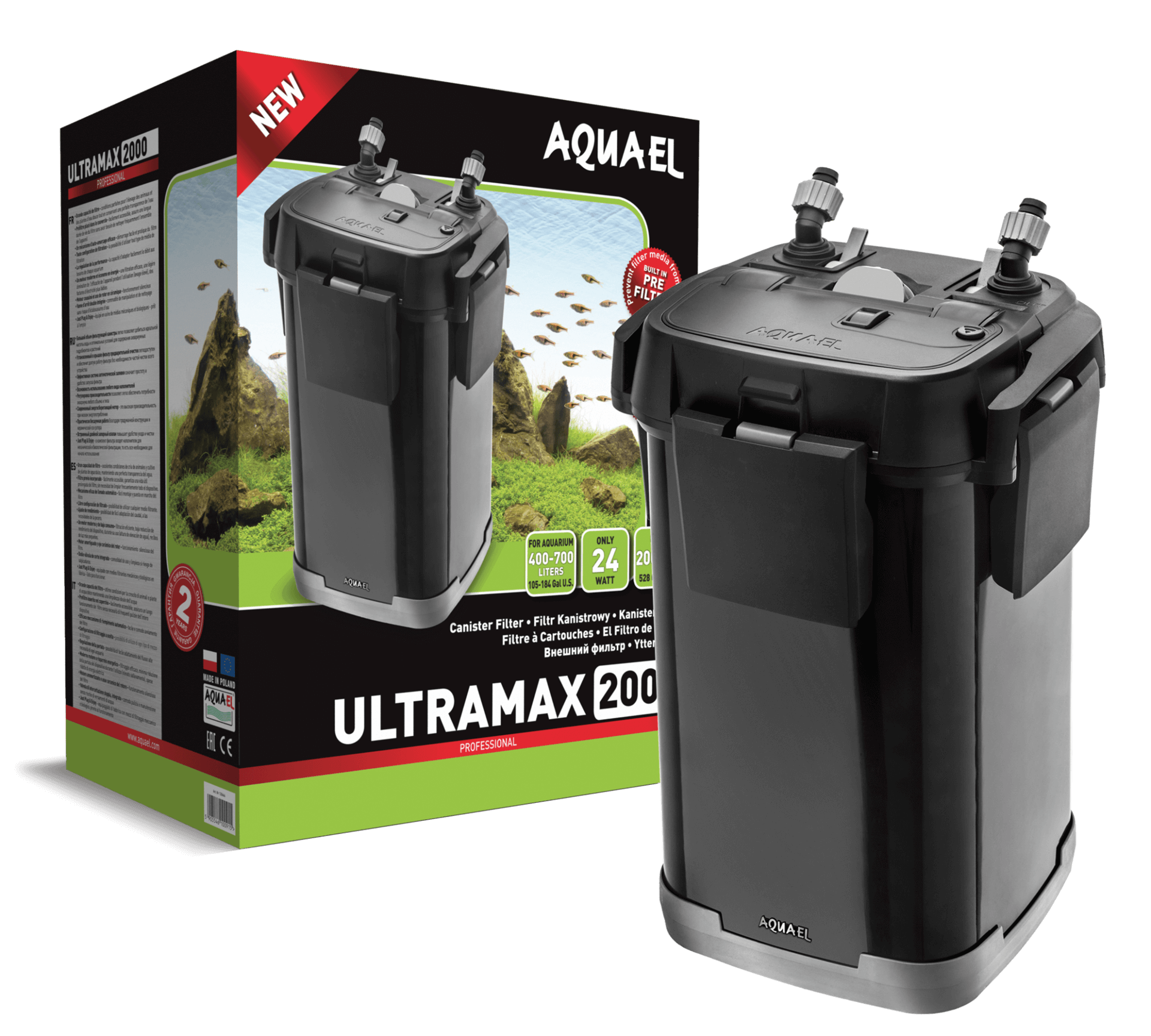 Wyjątkowo niskie zużycie energii elektrycznej – firma AQUAEL dba o środowisko naturalne oraz o portfele swoich klientów. Dlatego innowacyjne filtry ULTRAMAX odznaczają się bardzo niskim zużyciem energii, co przekłada się na obniżone rachunki. Model ULTRAMAX 2000 ma moc zaledwie 24 W!