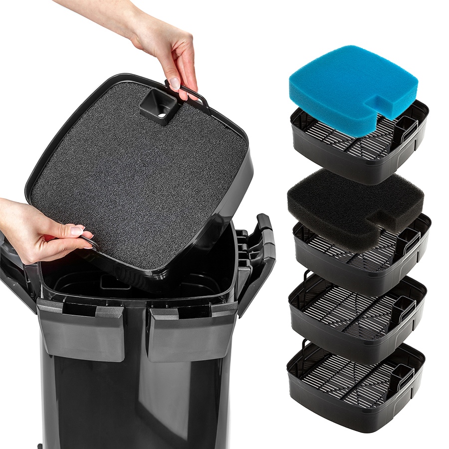 Dodatkowo 2 puste kosze na media filtracyjne, które można wypełnić zgodnie z potrzebami akwarium.