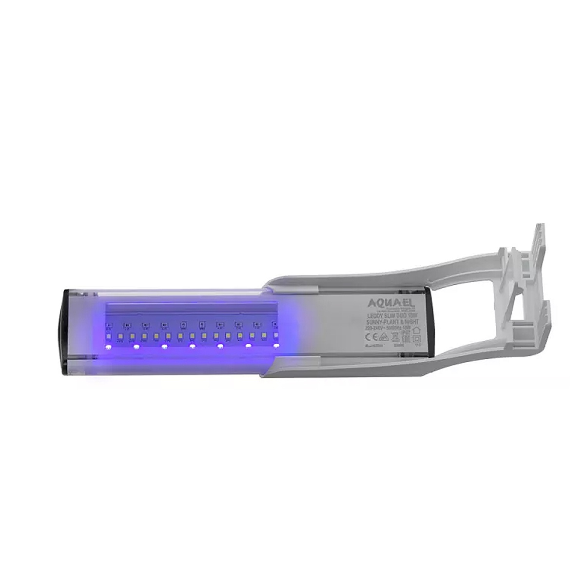 Lampa ledowa LEDDY SLIM DUO 10W SUNNY PLANT&NIGHT jest przeznaczona do oświetlania słodkowodnych zbiorników otwartych o długości od 20 do 30 cm. Zawiera dwa rzędy diod o łącznej mocy 10 W (2x5 W). Połowę stanowią diody SUNNY emitujące światło zbliżone do słonecznego (temperatura barwowa 7000 K), zaś drugą połowę diody PLANT opracowane specjalnie z myślą o potrzebach roślin (temperatura barwowa 9000 K). Lampa doskonale odwzorowuje barwy wnętrza zbiornika i wspomaga szybki, niezakłócony wzrost roślin. Idealnie sprawdza się w niedużych akwariach roślinnych oraz krewetkariach. Jej płaski, futurystyczny kształt i modny, biały kolor sprawiają że doskonale komponuje się z nowoczesnymi zbiornikami akwariowymi i świetnie wygląda w każdym wnętrzu. Poza tym jest uniwersalna – można ją instalować również na zbiornikach o niestandardowych rozmiarach.