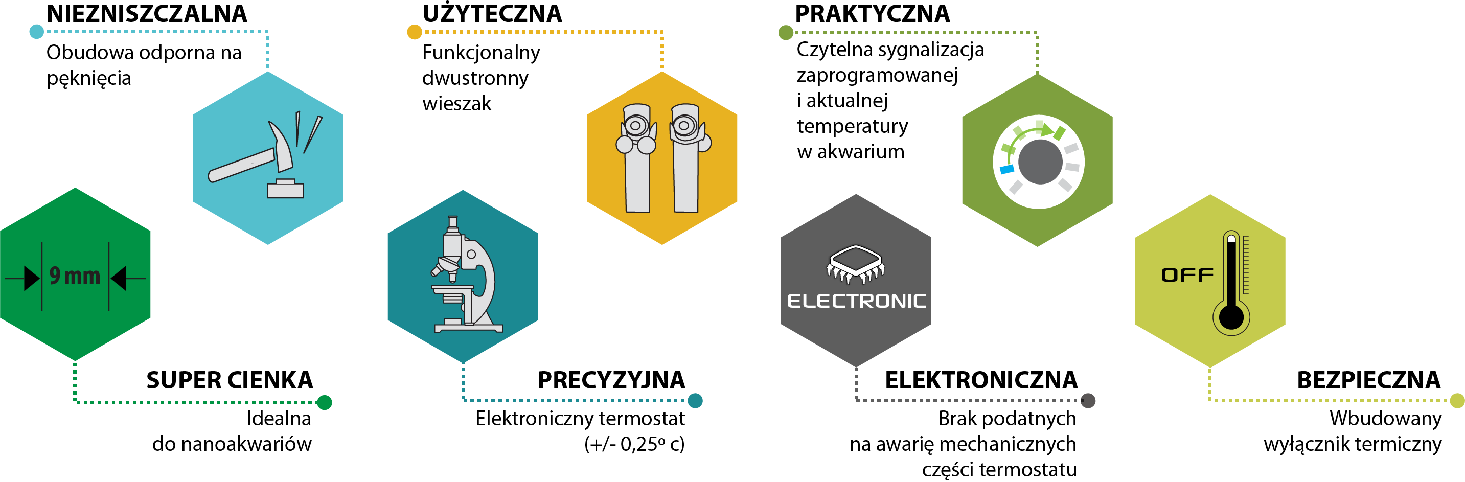 Nowa generacja grzałek akwariowych wyróżniających się odporną na uderzenia obudową z tworzywa sztucznego oraz wyjątkowo precyzyjnym, elektronicznym termostatem.