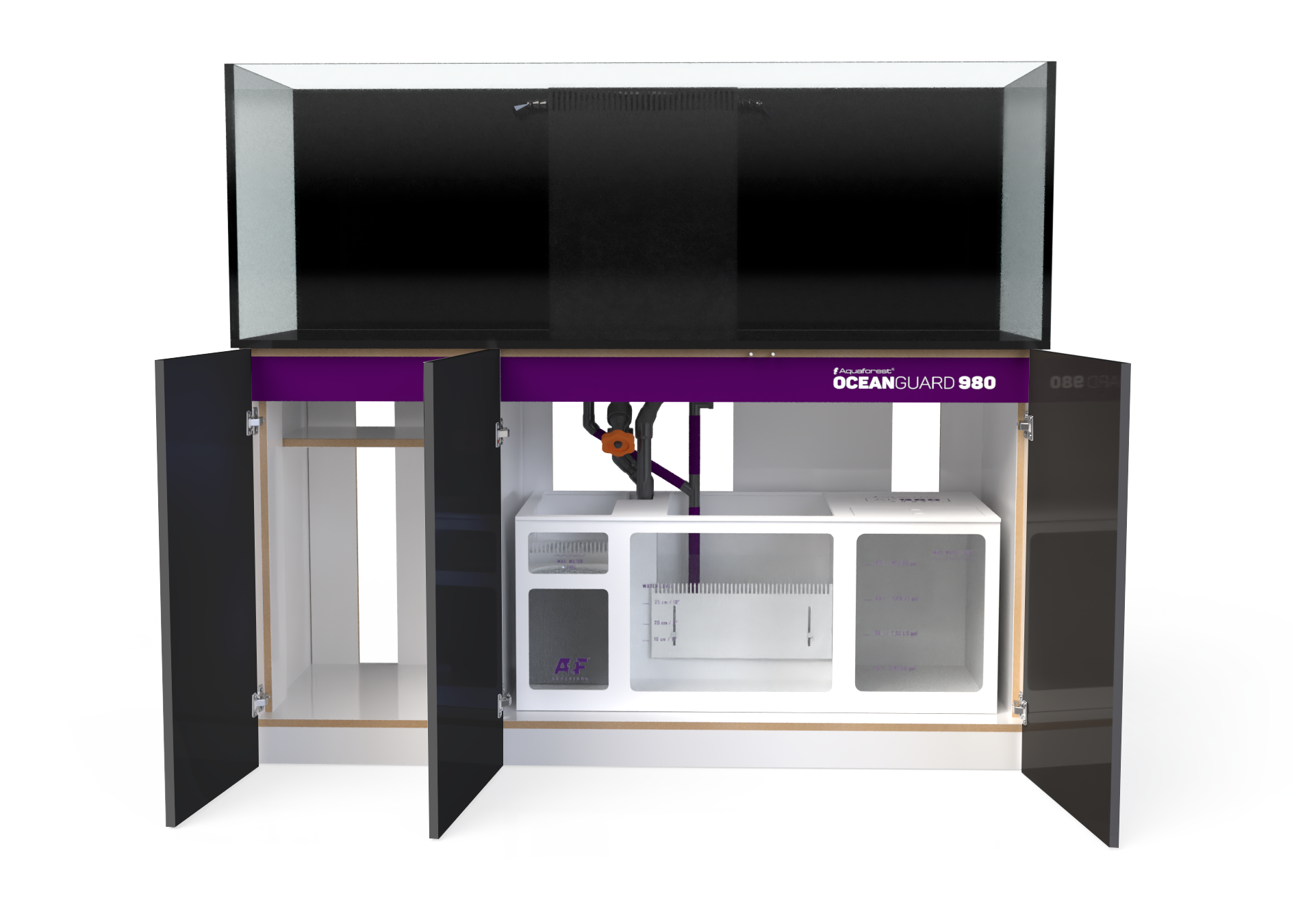 Oferta obejmuje akwarium o pojemności 730L wraz z szafką w kolorze carbon oraz sumpem, zestaw jest kompletny.