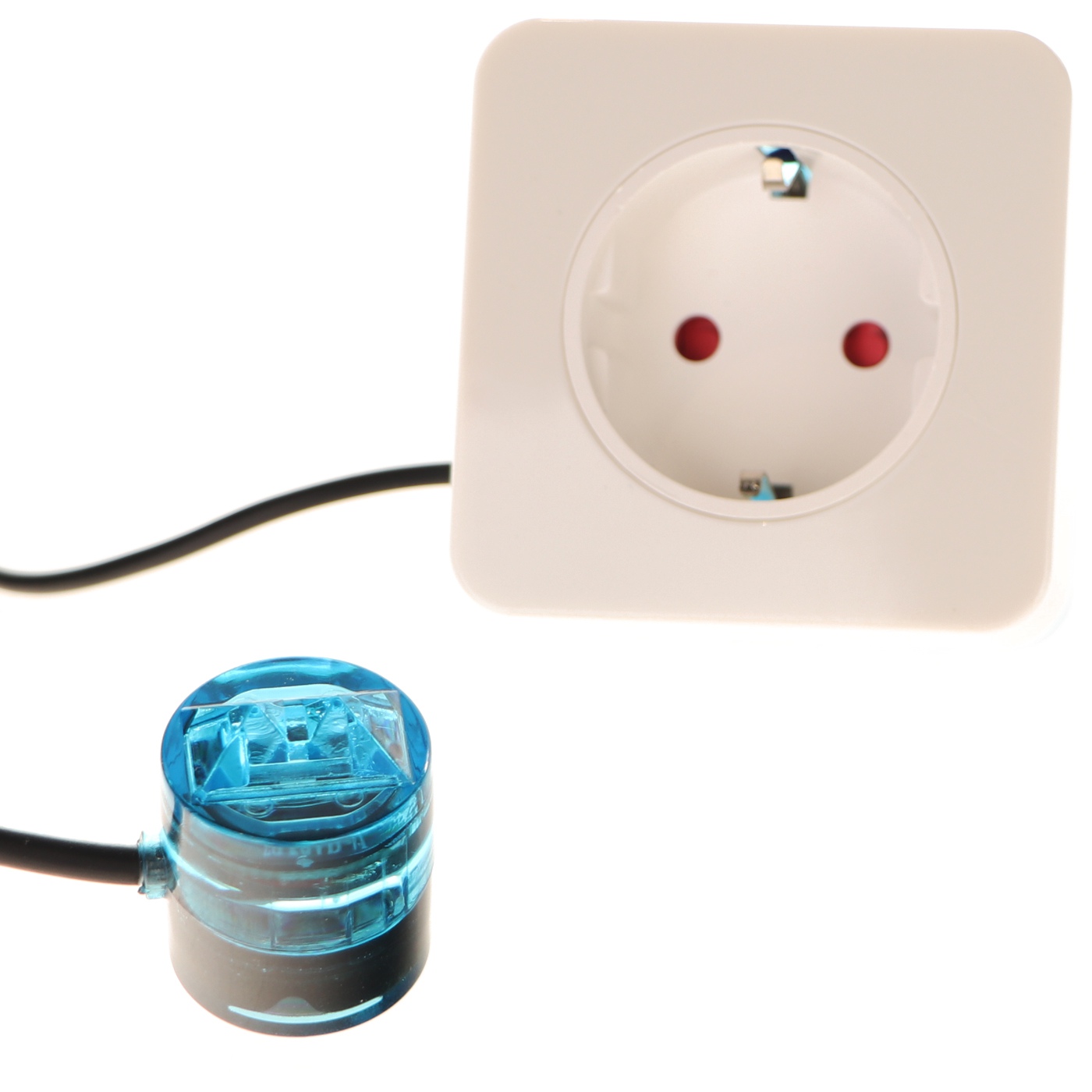 W momencie uruchomienia oko znajduje się pod wodą. W przypadku gdy poziom wody spadnie poniżej oka, urządzenie wyłączy swoje gniazdo, wyłączając tym samym podpięte urządzenie np: pompę wody z rezerwy.