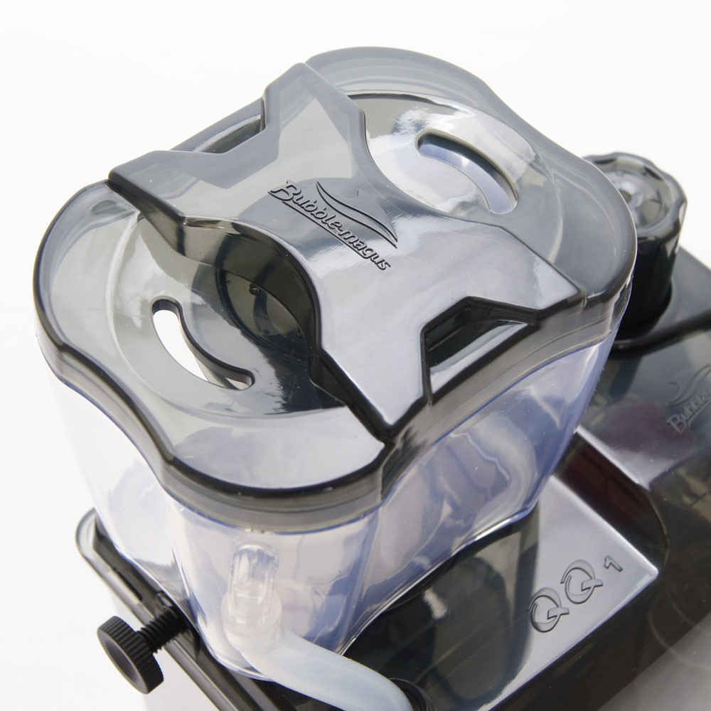 Bubble Magus QQ1 wyposażony został w pompę z osią ceramiczną i igiełkowym wirnikiem, czyli rozwiązaniami do tej pory spotykanymi jedynie w wiekszych modelach odpieniaczy. Dzięki montażowi na ścianie zbiornika czyszczenie kubka na zabrudzenia oraz oraz konserwacja pompy jest niesamowicie prosta.