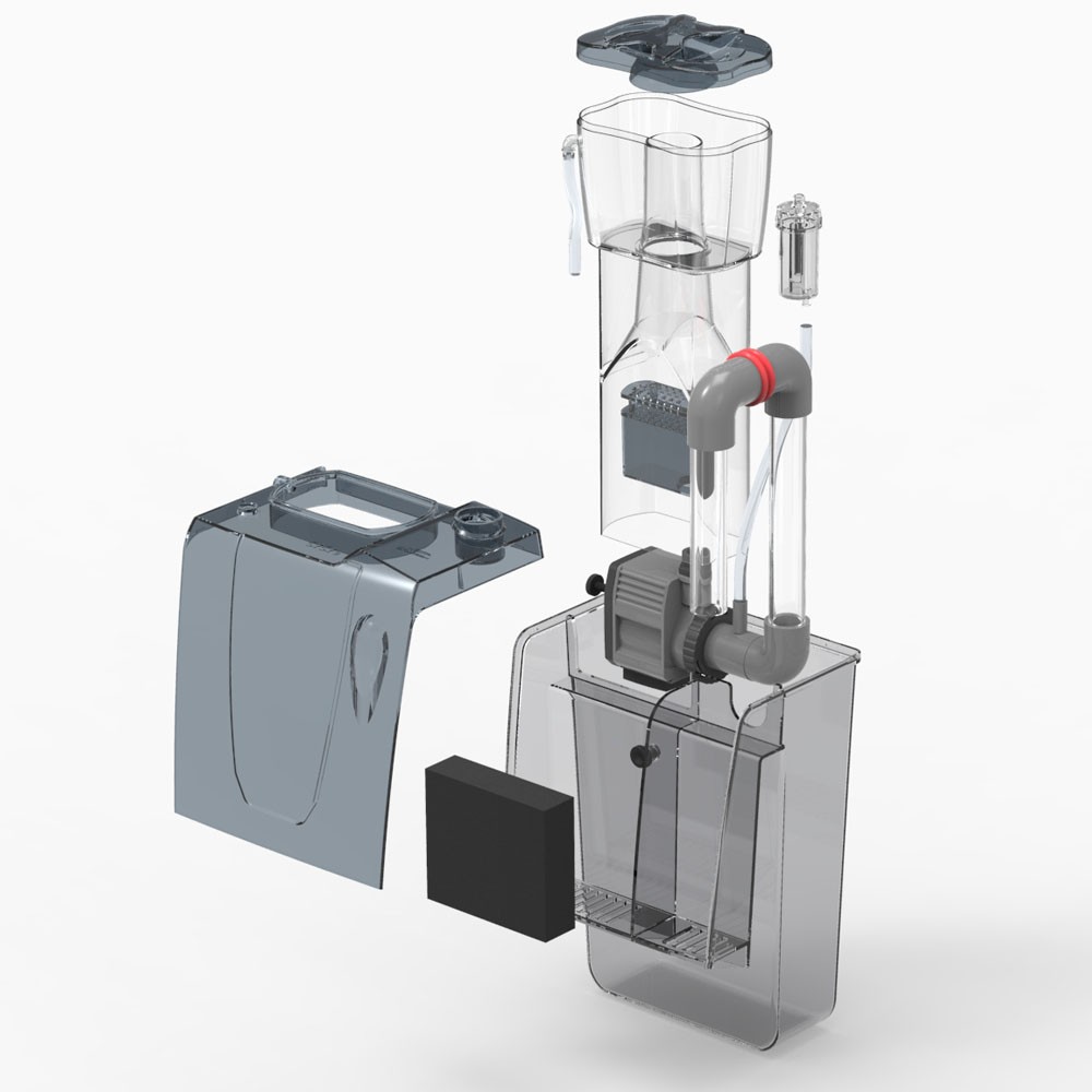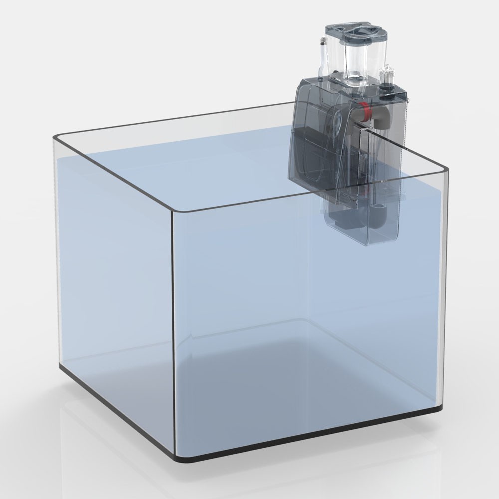 Dzięki montażowi na ścianie zbiornika czyszczenie kubka na zabrudzenia oraz oraz konserwacja pompy jest niesamowicie prosta. Odpieniacz nie wymaga użycia sump'a oraz nie zajmuje miejsca wewnątrz zbiornika głownego.