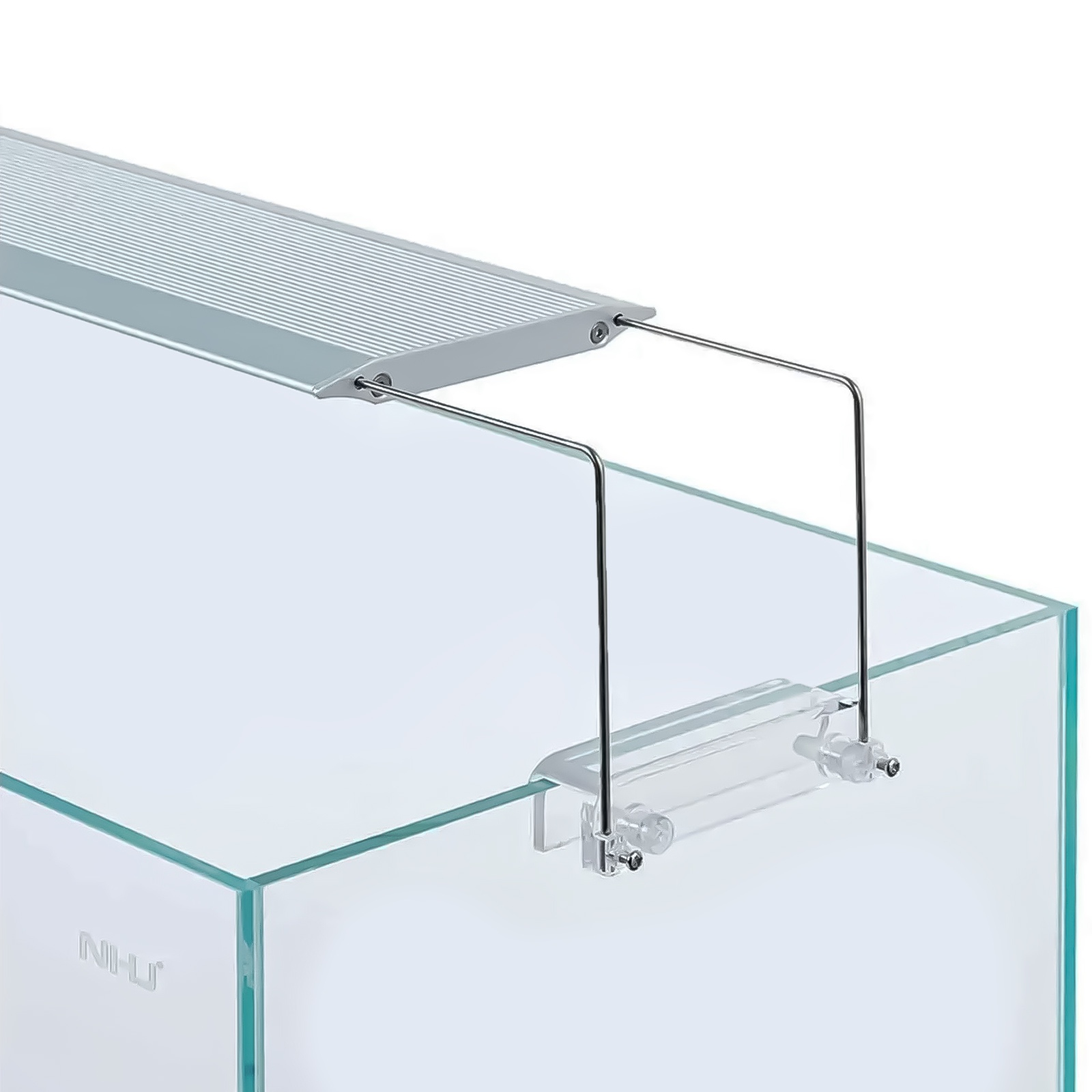 Lampę stawiamy na krawędziach akwarium. Nóżki umożliwiają zainstalowanie lampy na akwarium o szerokości 80-90cm. Uchwyty na szkło również są uniwersalne i pasują do grubości szkła od 4mm do 8mm.