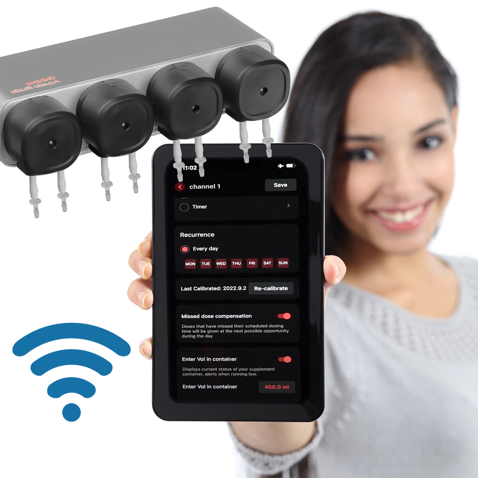 Konfigurowanie i sterowanie pompami dozownika odbywa się poprzez aplikację My Chihiors, która jest dostępna zarówno na urządzenia mobilne z systemem operacyjnym iOS i Android. Każda z pomp jest programowana osobno i może być uruchamiana także poza programem na życzenie użytkownika.