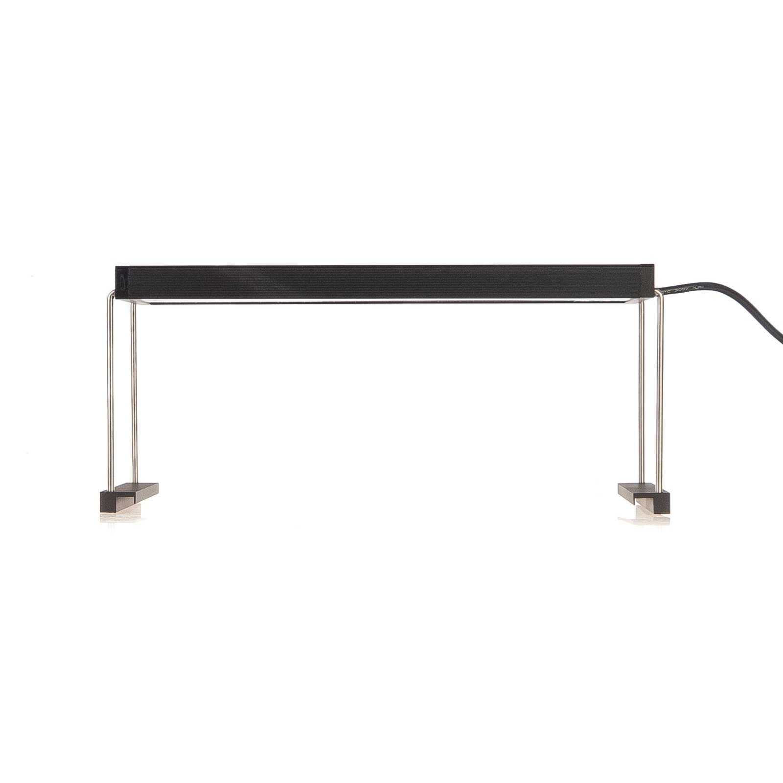 W zestawie znajdują się nóżki do montażu lampy na krawędzi szyby akwarium. Grubość szyby to max 12mm.