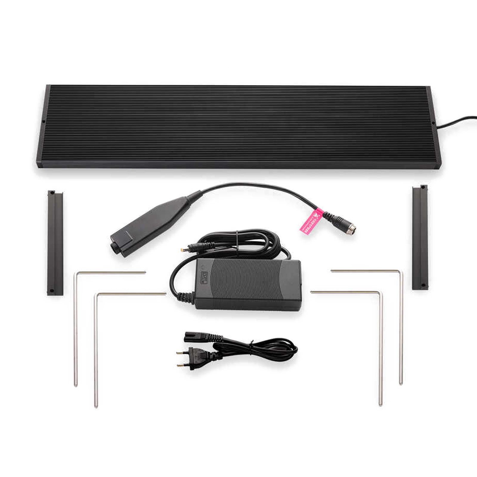W zestawie znajdują się nóżki do montażu lampy na krawędzi szyby akwarium. Grubość szyby to max 12mm.