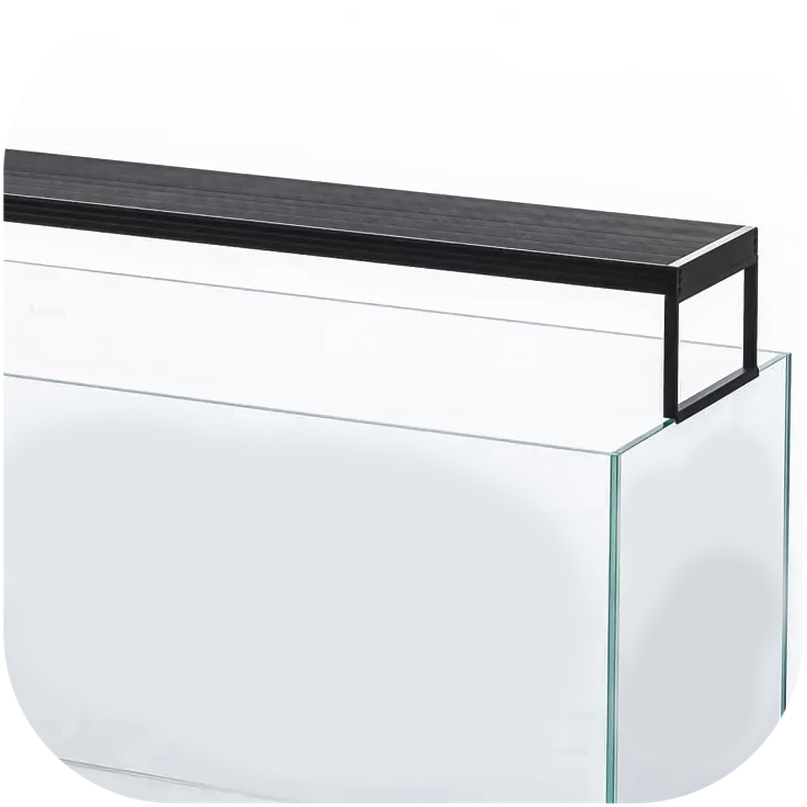 W zestawie znajdują się nóżki do montażu lampy na krawędzi szyby akwarium. Grubość szyby to max 12mm.