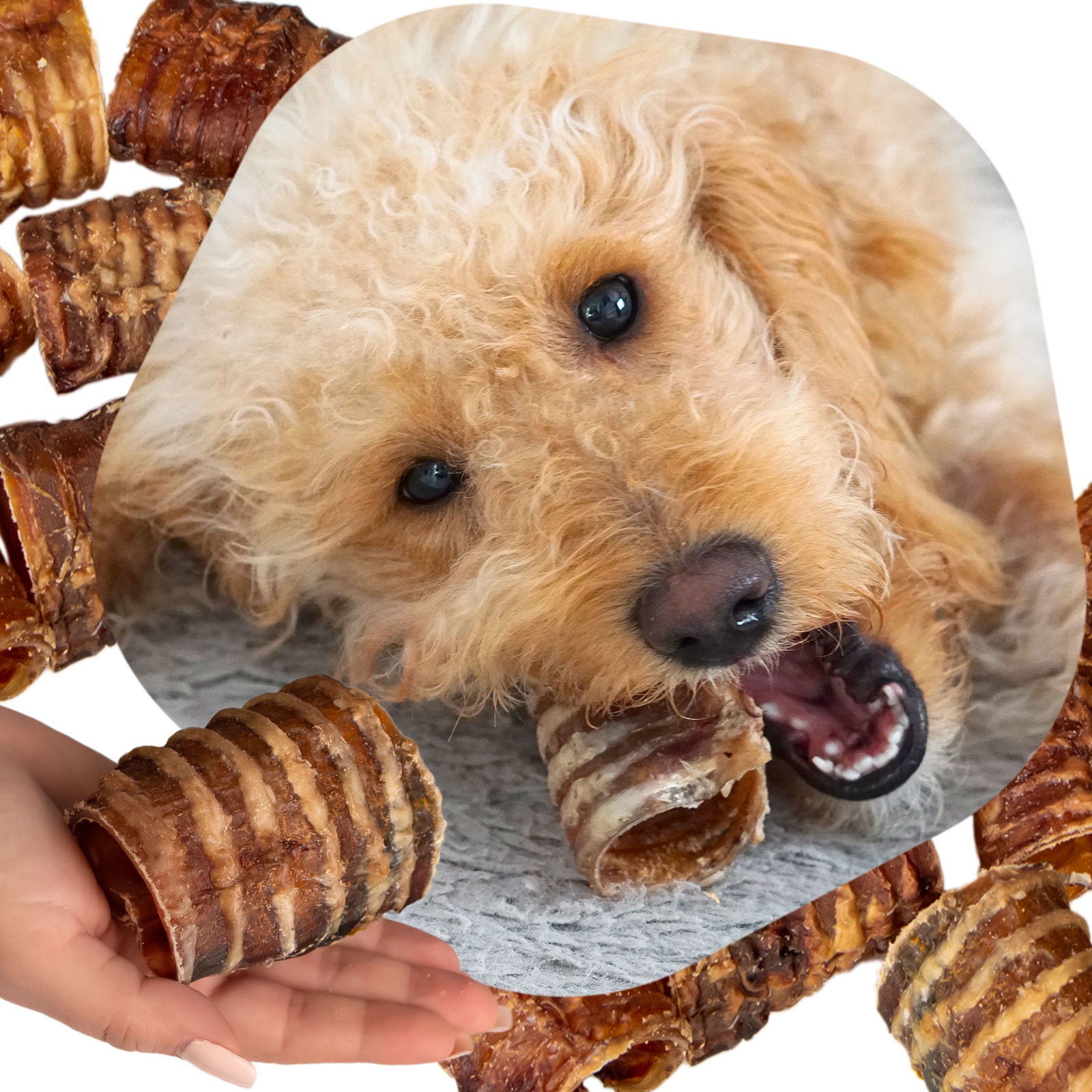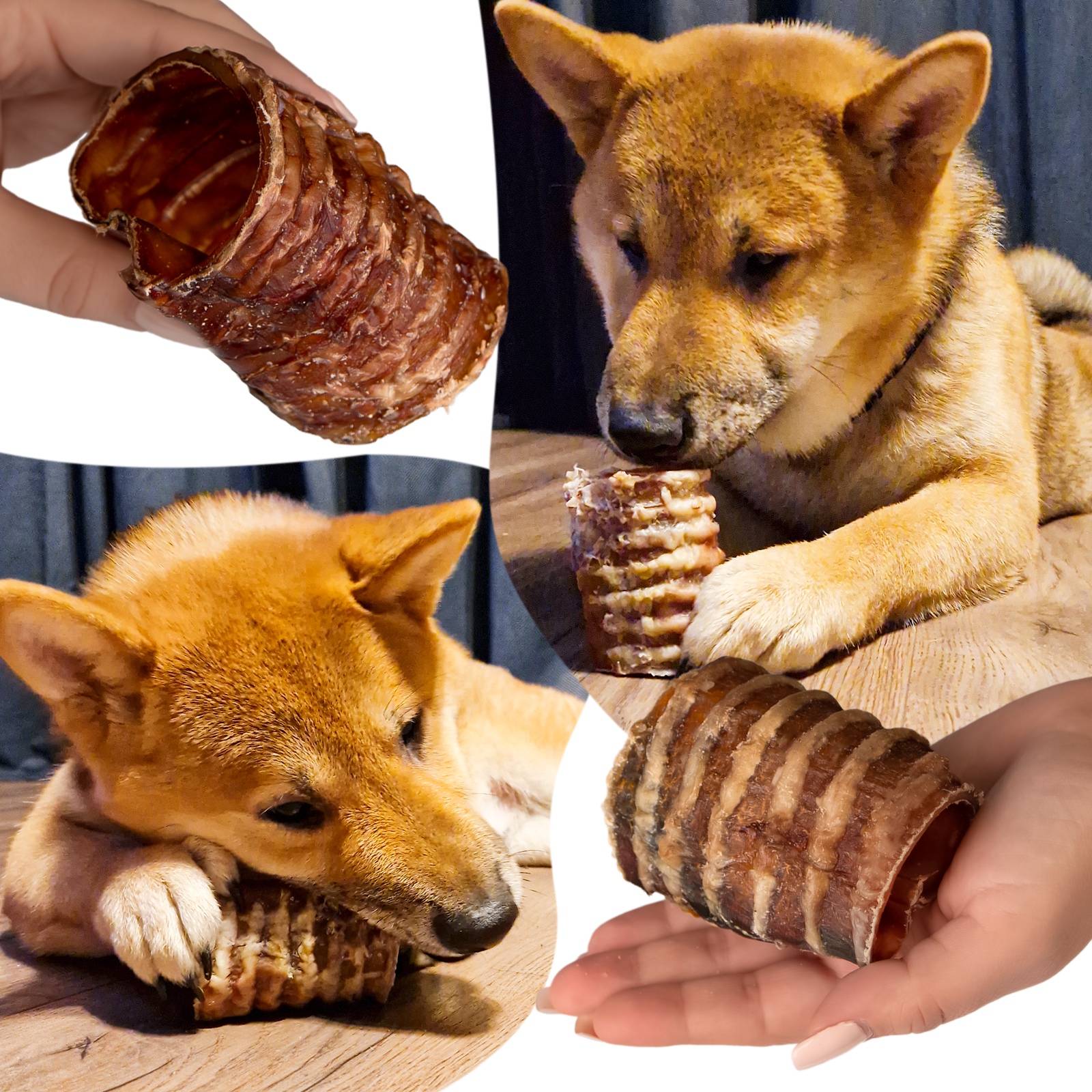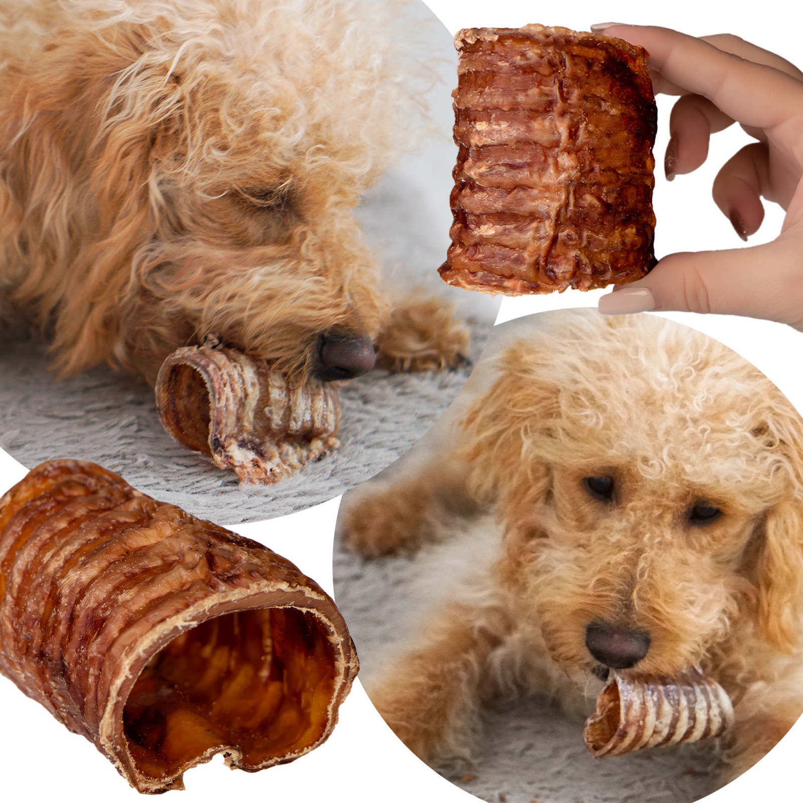 Tchawica, choć może się wydawać niepozorna, jest bardzo twarda. Jej budowa to chrząstki, wiązadła i mięśnie gładkie. Całość mocno chrupie, a kształt "rurki" pozwala na dłuższą zabawę i ułatwia dobranie się do niej zębami. Właśnie dzięki temu unikalnemu kształtowi, mimo swojej twardości, może być polecana wszystkim psom.