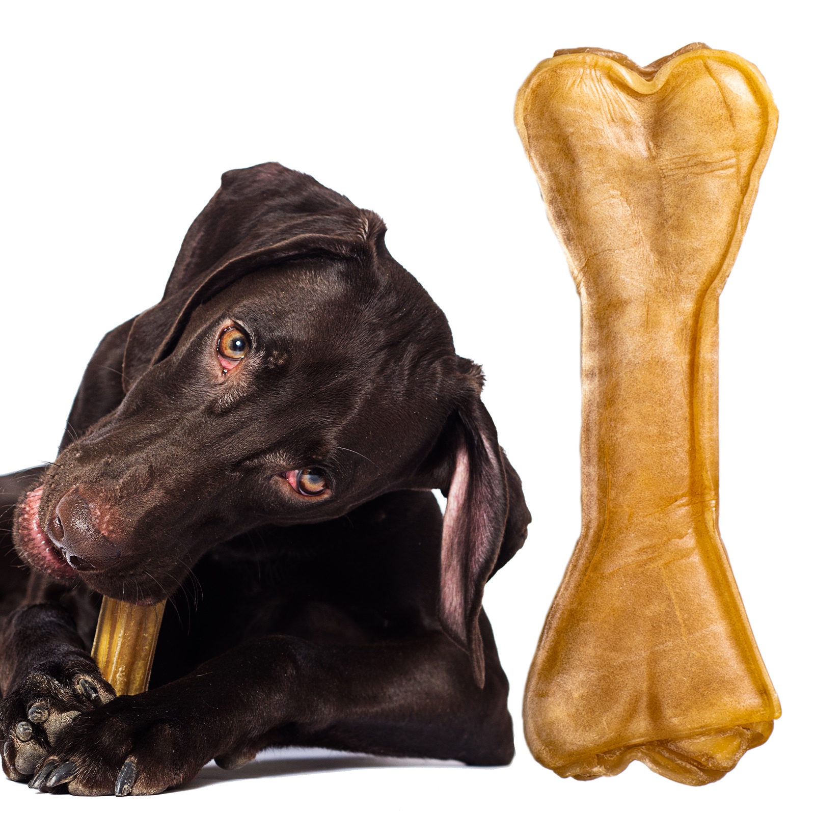 Gryzak ten jest produkowany wyłącznie z skóry wołowej. Proces suszenia zapewnia długą przydatność do spożycia oraz odpowiednią twardość.