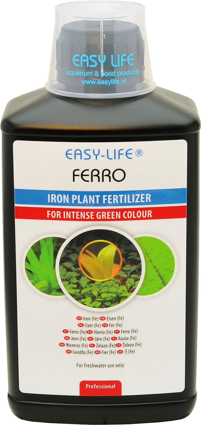 Nawóz Ferro to skoncentrowany preparat z serii EasyLife, za pomocą którego jesteśmy w stanie poprawnie wybarwić rośliny w naszym zbiorniku. Jeżeli stożki wzrostu są mało wybarwione (blade) to jest to ewidentny brak żelaza.