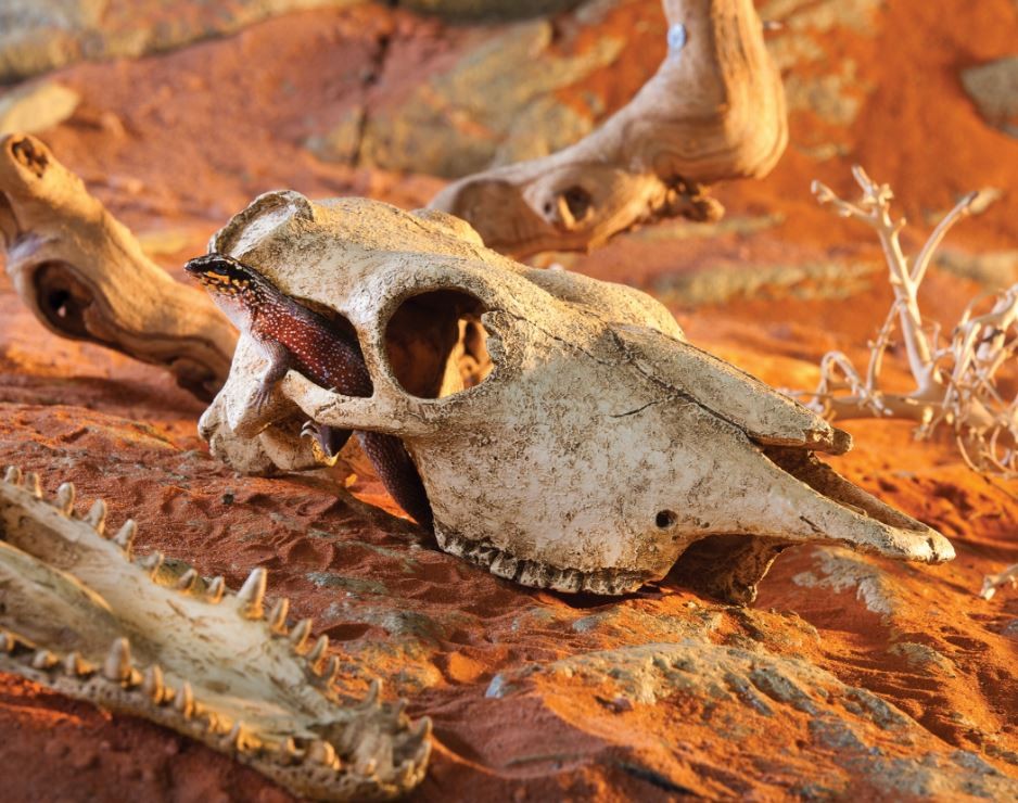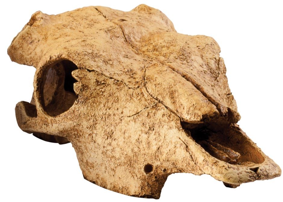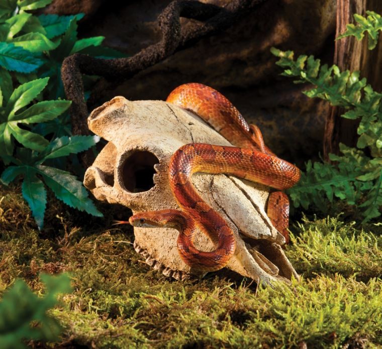 Liczne kryjówki w wybiegu eliminują stres pupila, chronią zwierze przed nadmiernym przegrzaniem oraz stymulują zachowania rozrodcze. Produkt, wykonany z odpornej na uszkodzenia oraz wilgoć żywicy, pokrytej nietoksycznym tworzywem, do złudzenia przypomina prawdziwą czaszkę. Ozdoba jest ciężka, zapewniając stabilność kryjówki, nawet pod naporem energicznych i ciężkich pupili. Wysokiej jakości laminat upraszcza czyszczenie oraz dezynfekcje.