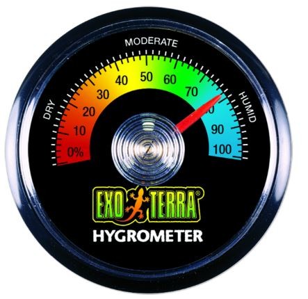 Zegary EXO TERRA montowane są na samoprzylepnej taśmie co gwarantuje pewne i trwałe zamontowanie urządzenia. Skala posiada precyzyjną podziałkę (co 2%) oraz barwy informujące o warunkach panujących wewnątrz wybiegu.