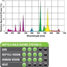 Doskonale stymuluje rozwój gadów pochodzących z rejonów tropikalnych i subtropikalnych, emitując optymalne dla nich poziomy UVB oraz stanowi źródło niezbędnego promieniowania dla optymalnego metabolizmu wapnia. Promieniowanie UVA stymuluje apetyt, aktywność i zachowania rozrodcze. Ograniczenie poziomu promieniowania UV korzystnie wpływa na gady, które w warunkach naturalnych mają ograniczony dostęp do tego rodzaju promieniowania, poprzez wysoką wilgotność powietrza, gęsto zacienione miejsca, częste zmiany pogody. Pełna skuteczność do 40cm.