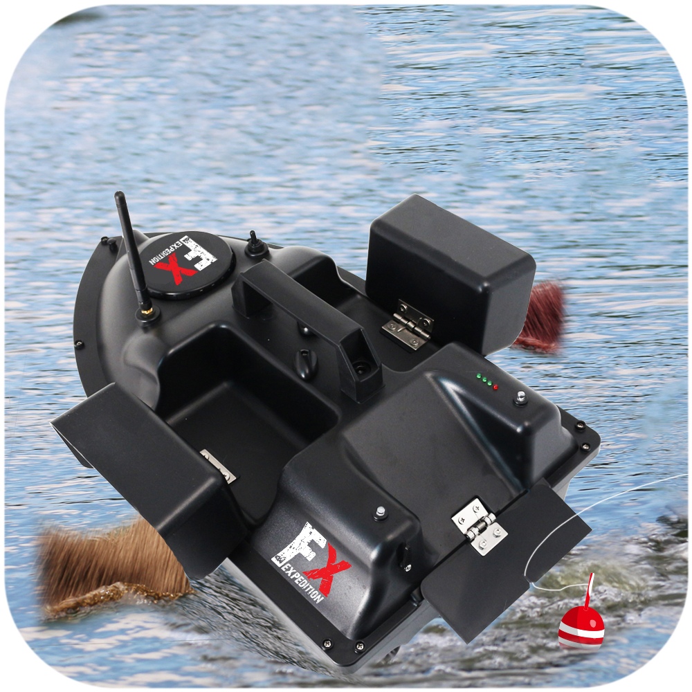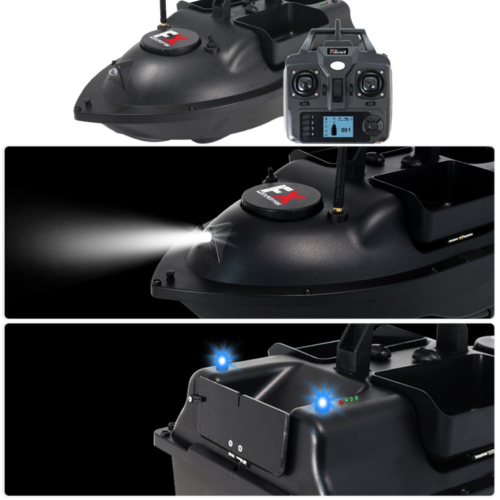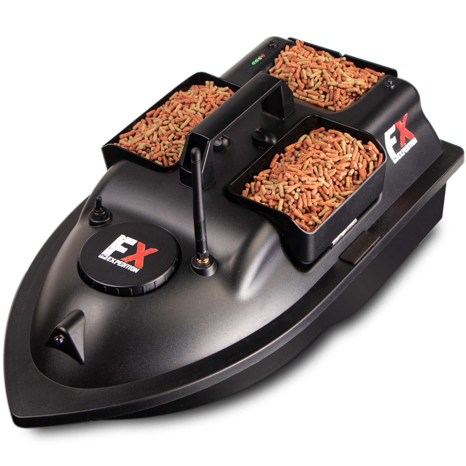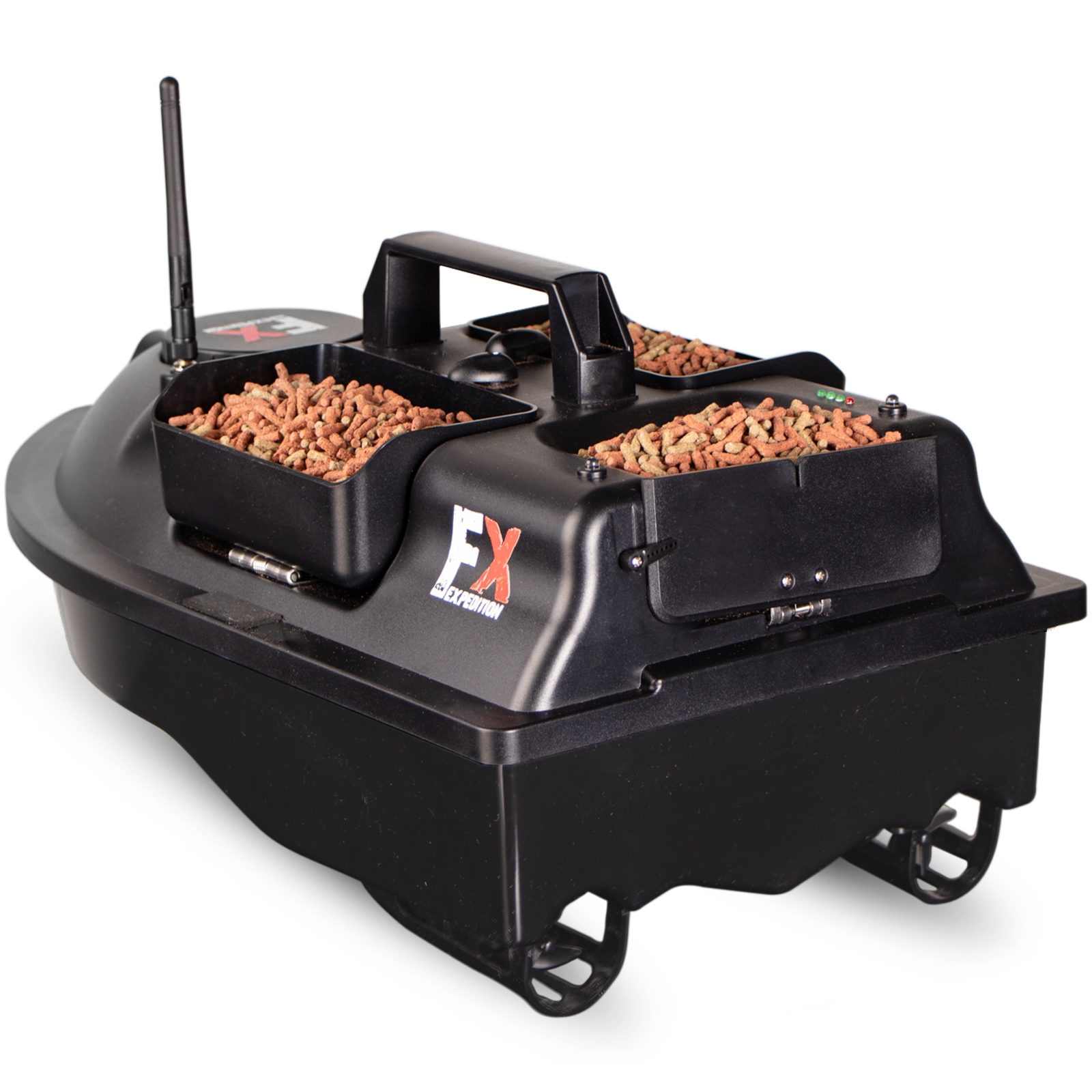 Łódka posiada trzy zbiorniki, które łącznie pomieszczą 2kg przynęty, aby przyciągnąć ławicę ryb. Zbiornikami możesz sterować osobno. Dodatkowo w tylnej części łódki znajduje się specjalne miejsce do zamontowania haka z przynętą. Z dobrym wyposażeniem z łatwością przekonasz ryby, że Twój hak to najlepszy posiłek w okolicy.