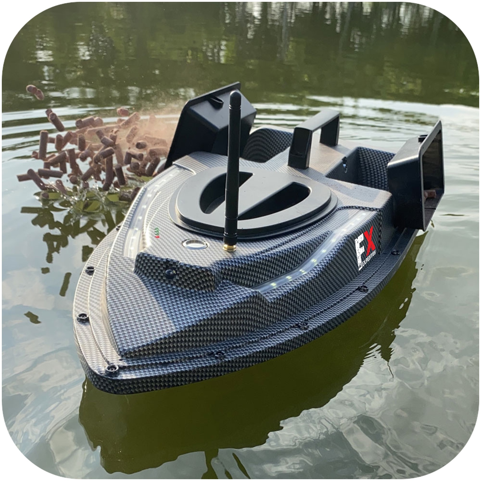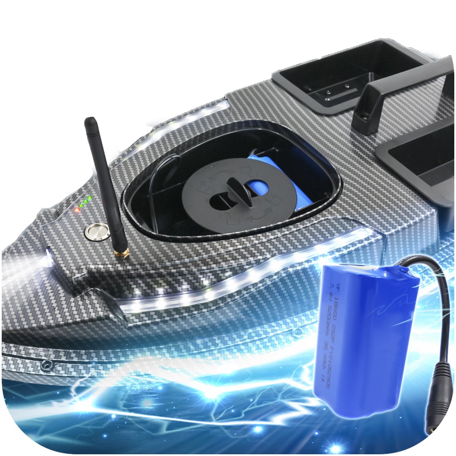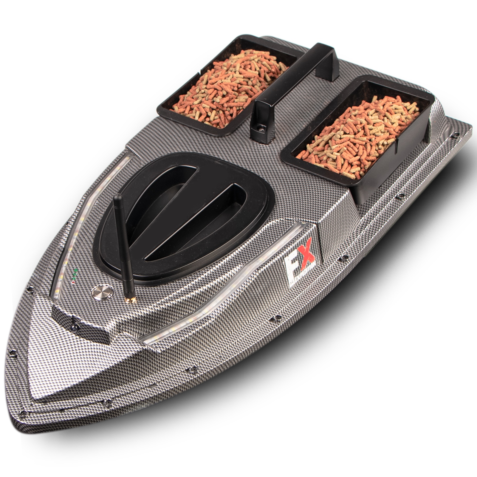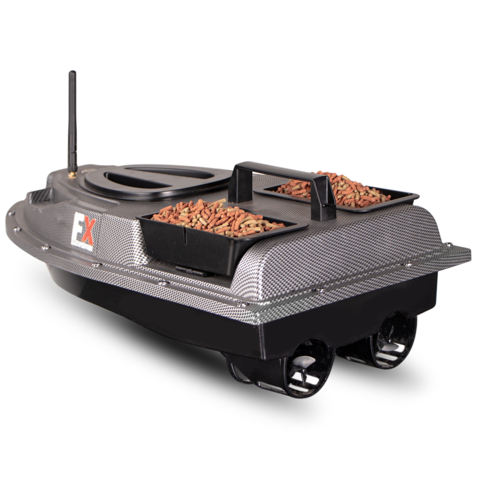 Łódka posiada dwa zbiorniki, które łącznie pomieszczą aż 1,5kg przynęty i przyciągną ławicę ryb. Zbiornikami możesz sterować osobno. Dodatkowo w tylnej części łódki znajduje się specjalne miejsce do zamontowania haka z przynętą. Z dobrym wyposażeniem z łatwością przekonasz ryby, że Twój hak to najlepszy posiłek w okolicy.