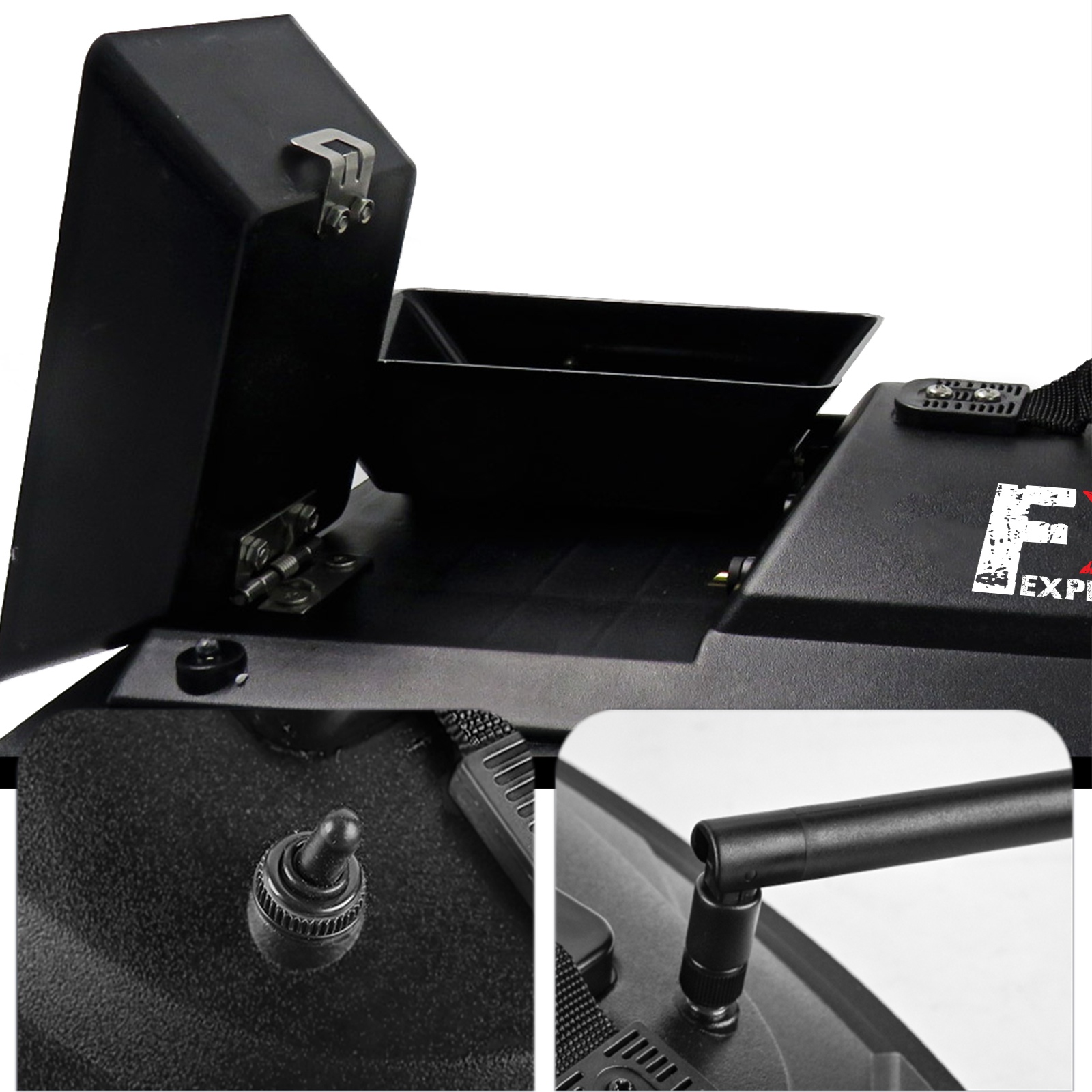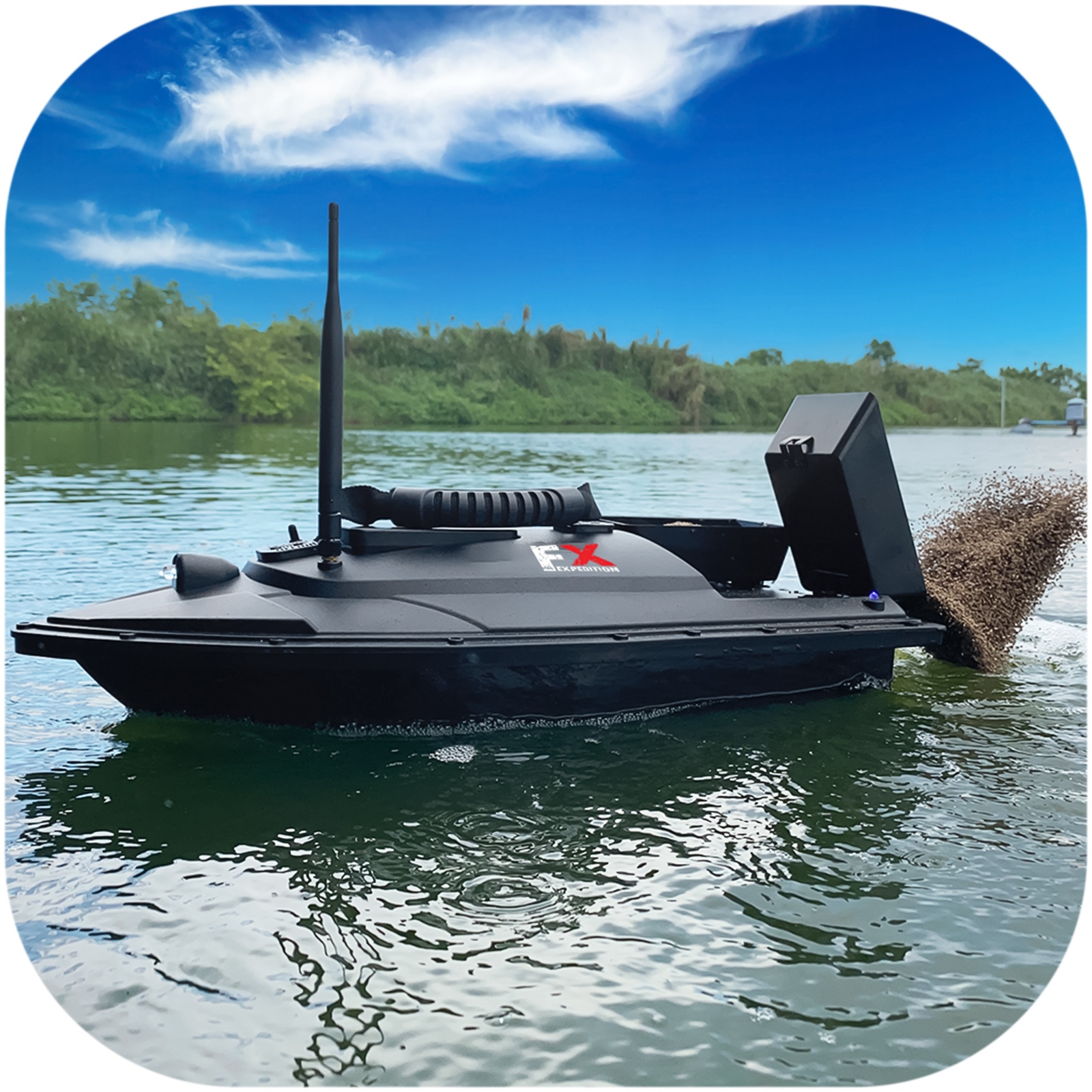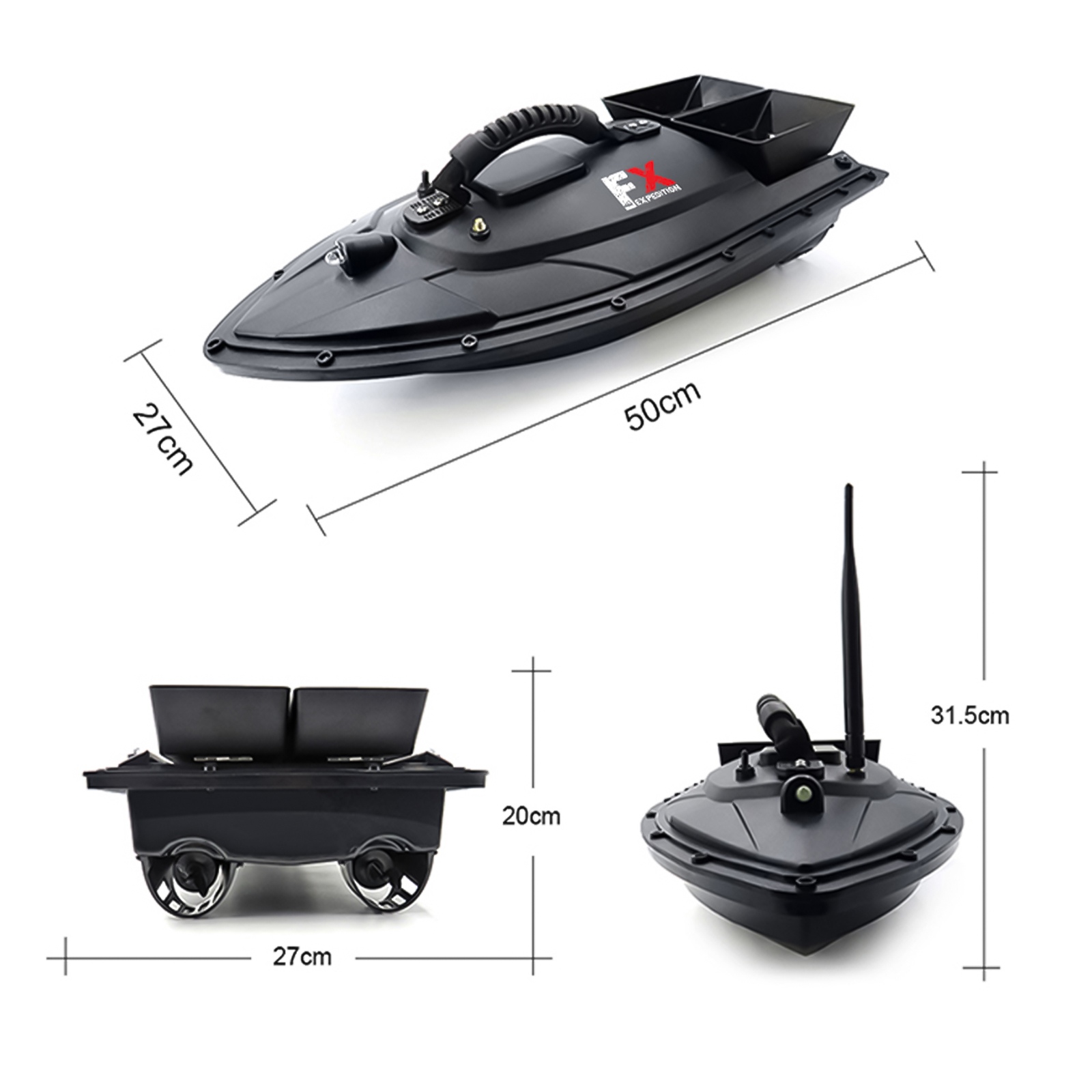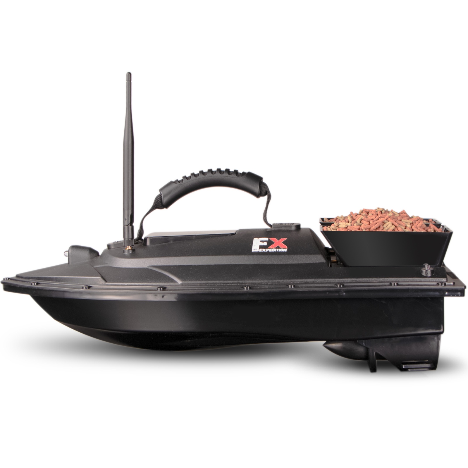 Łódka posiada dwa zbiorniki, które łącznie pomieszczą do 1,5kg przynęty, aby przyciągnąć ławicę ryb. Zbiornikami możesz sterować osobno. Dodatkowo w tylnej części łódki znajduje się specjalne miejsce do zamontowania haka z przynętą. Z dobrym wyposażeniem z łatwością przekonasz ryby, że Twój hak to najlepszy posiłek w okolicy.