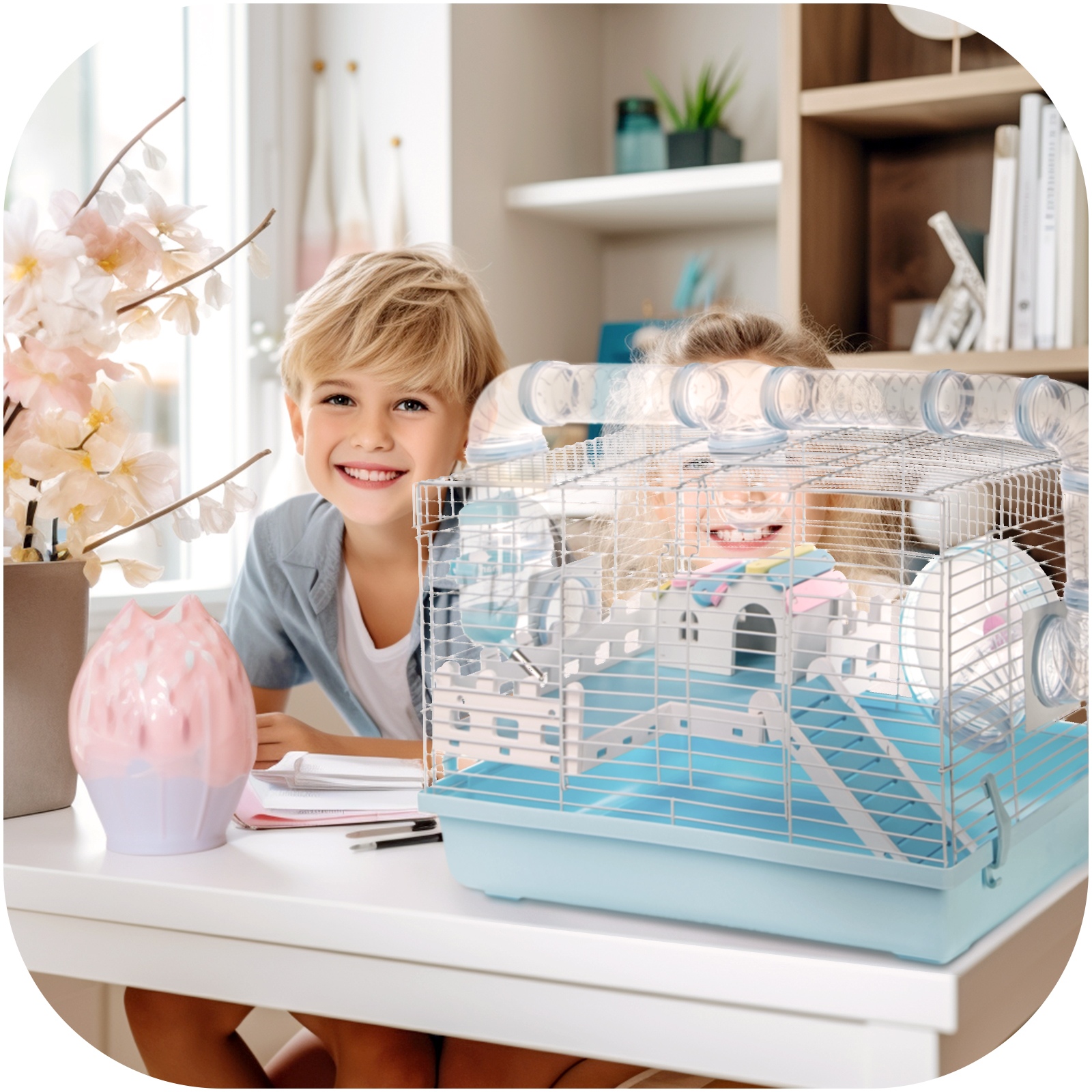 Zapraszamy wszystkie myszki i chomiki do świata przygód i wygód, gdzie każdy mały gryzoń czuje się jak król w swoim zamku! Nasza klatka "Miku Canals" to nie tylko dom dla Twojego puchatego przyjaciela, ale całe królestwo rozrywki i komfortu.