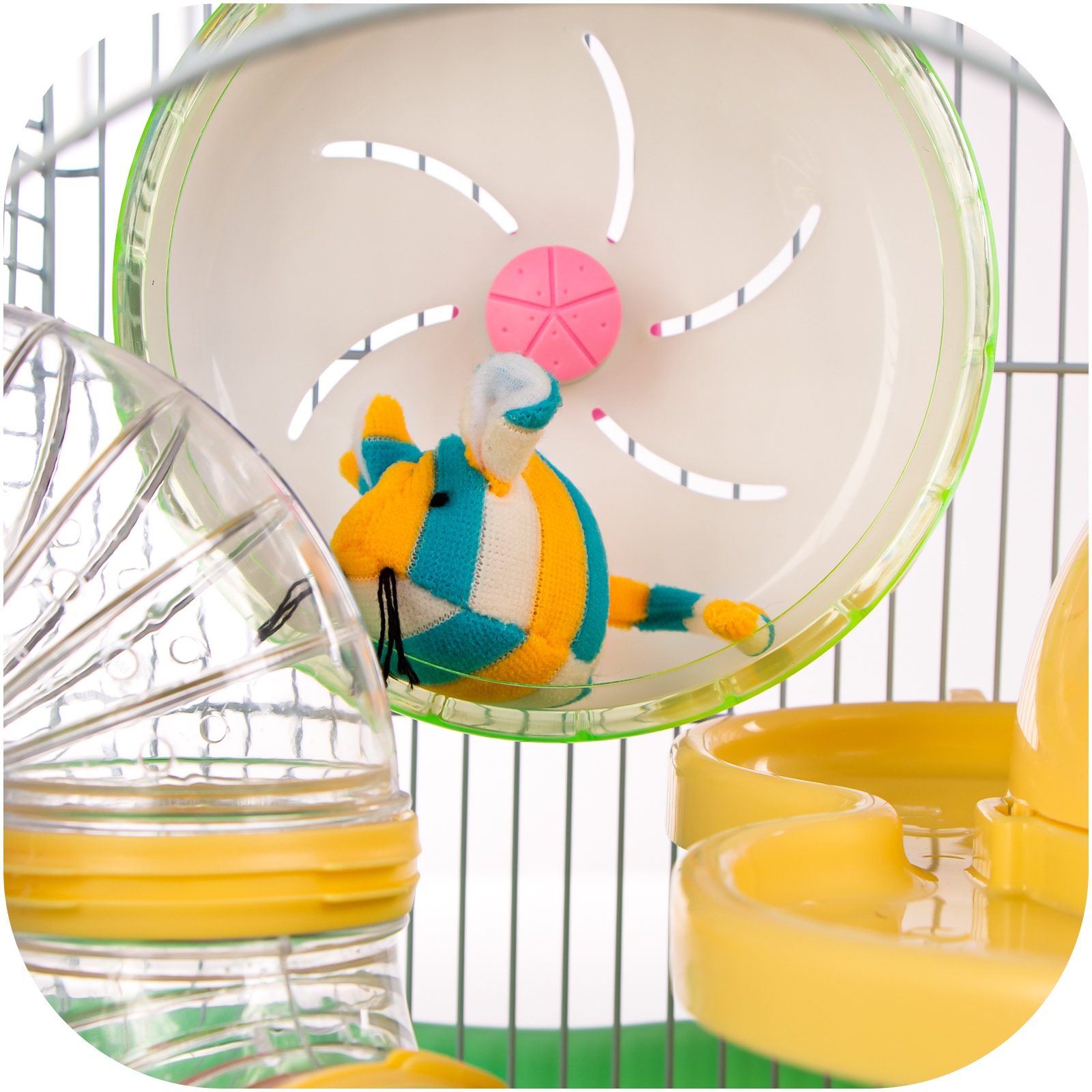 Kołowrotek Sportowy: W naszej klatce znajdziesz kołowrotek, który nie tylko zapewni rozrywkę Twojemu gryzoniowi, ale także pozwoli mu utrzymać formę. Przygotuj się na nieskończone maratony w miejscu!