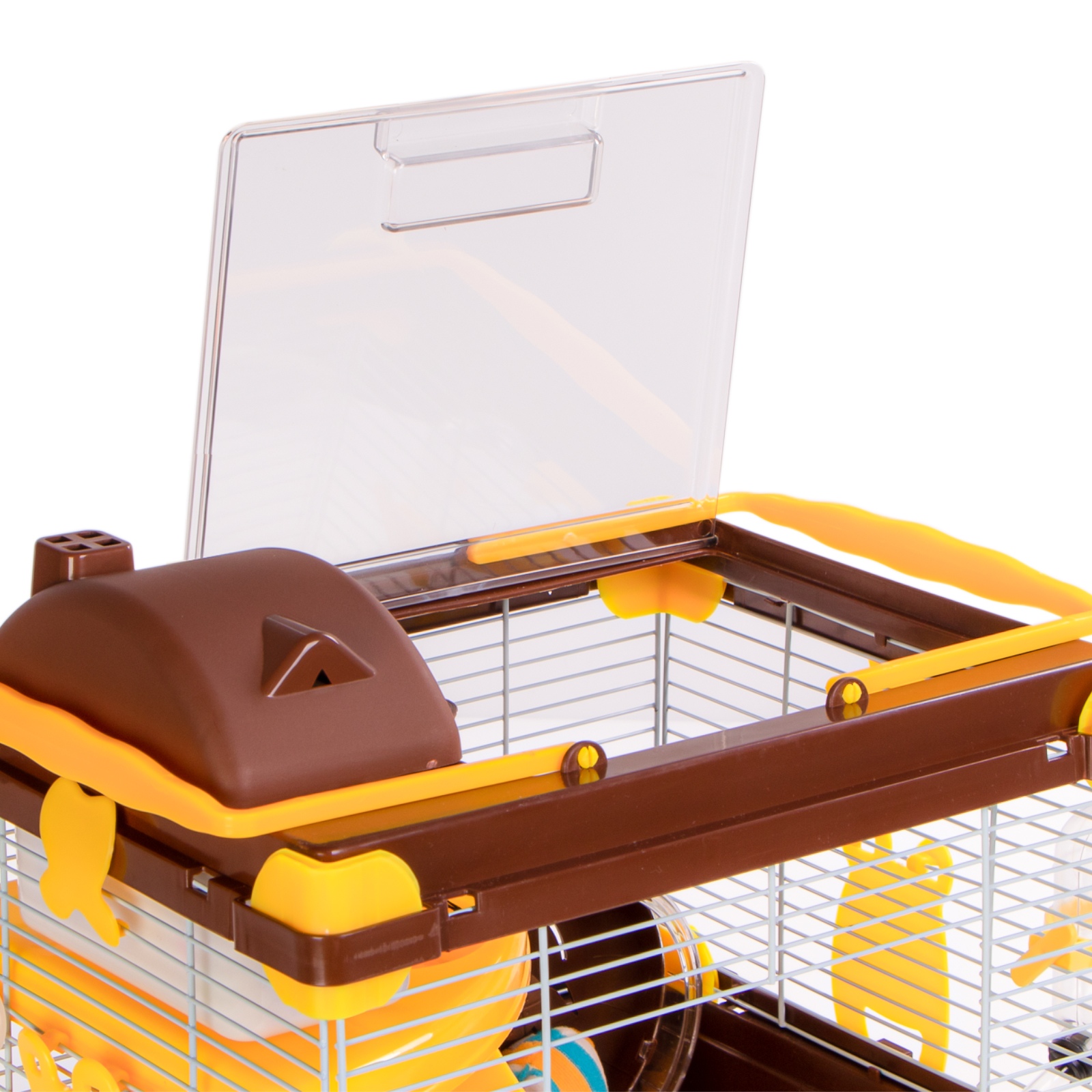 - Przezroczyste wieczko: Umożliwia swobodne obserwowanie zwierzątka. Dodatkowo jest uchylane, co ułatwia dostęp do wnętrza klatki.