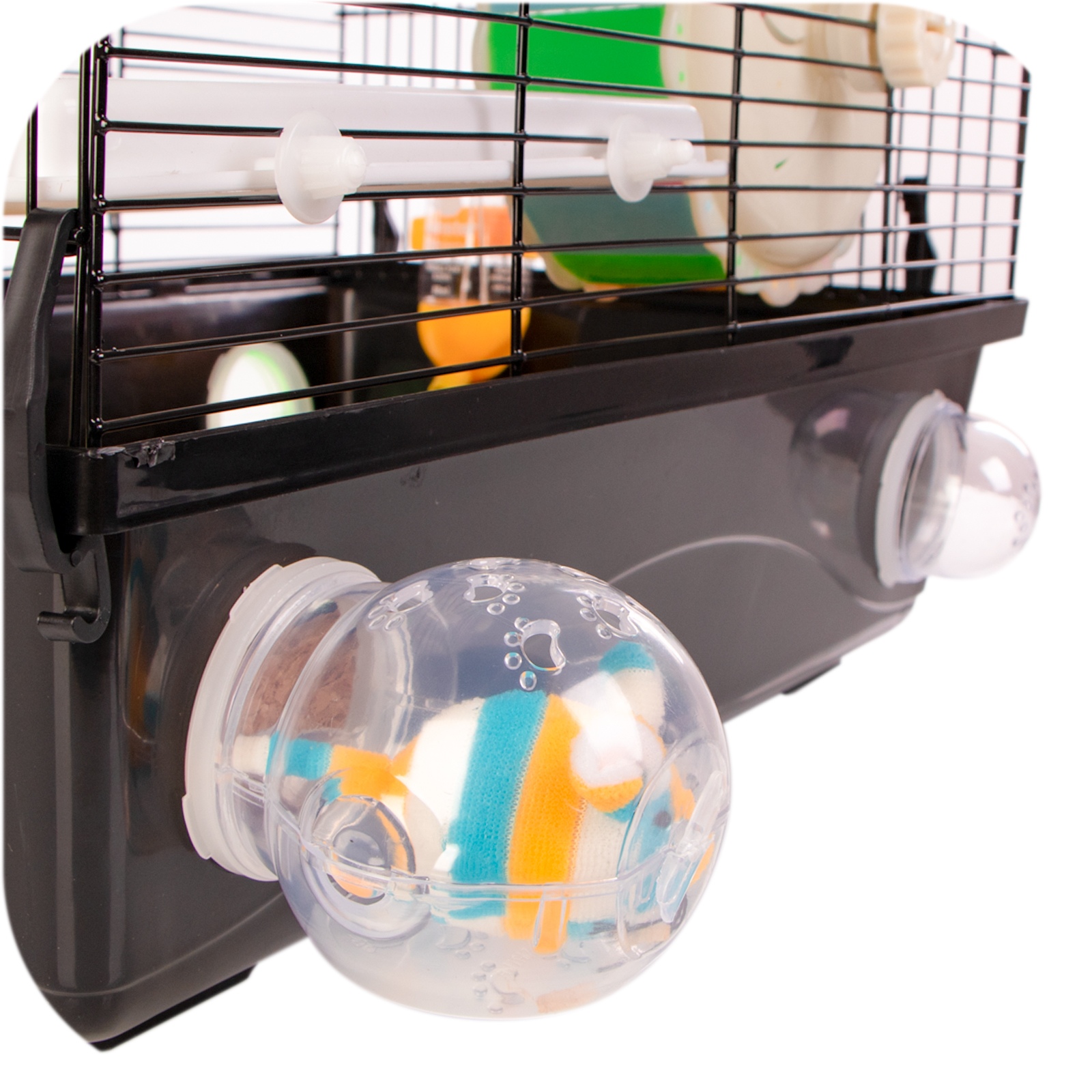 Zapraszamy wszystkie myszki i chomiki do świata przygód i wygód, gdzie każdy mały gryzoń czuje się jak król w swoim zamku! Nasza klatka "Miku Elegant" to nie tylko dom dla Twojego puchatego przyjaciela, ale całe królestwo rozrywki i komfortu.