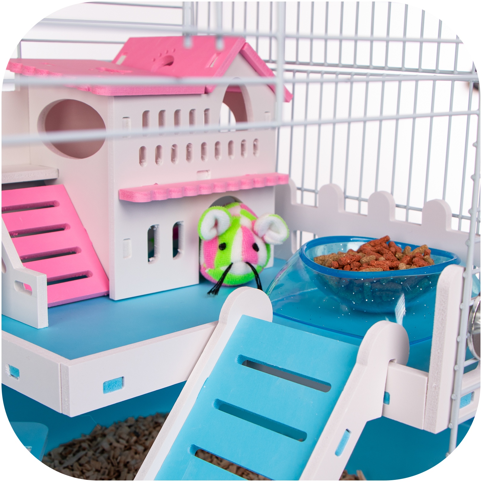Zapraszamy wszystkie myszki i chomiki do świata przygód i wygód, gdzie każdy mały gryzoń czuje się jak król w swoim zamku! Nasza klatka "Miku Canals" to nie tylko dom dla Twojego puchatego przyjaciela, ale całe królestwo rozrywki i komfortu.