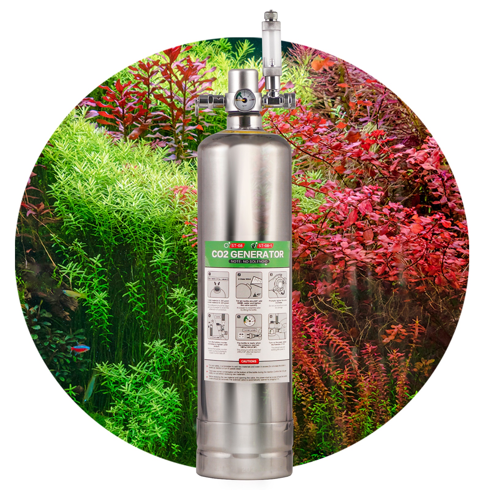 Wysokiej klasy całkowicie bezpieczny zestaw akwarystyczny CO2. Posiada wszystkie niezbędne elementy. Jest łatwy w użyciu. Nadaje się do zbiorników od 20 do 200l pojemności.