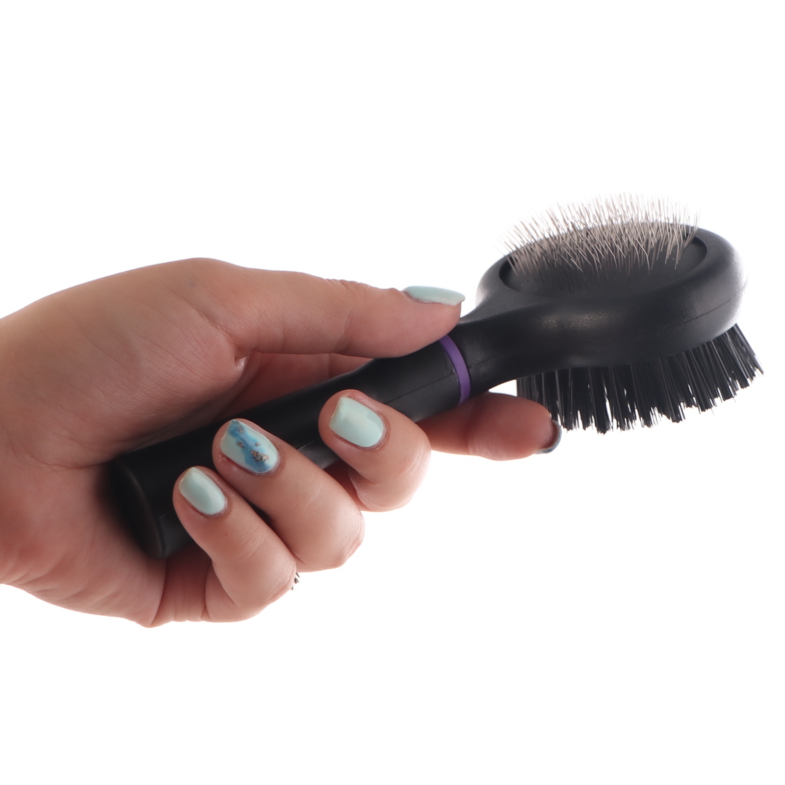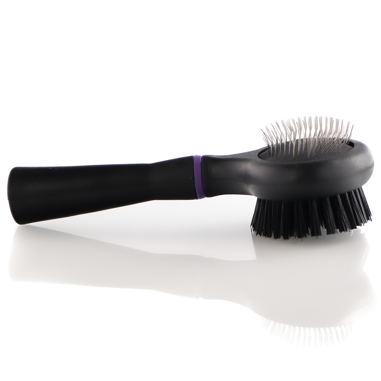 Dzięki praktycznej dwustronnej szczotce możemy skutecznie rozczesać splątane, skołtunione włosy, podczas gdy drugą miękką usunąć luźne i martwe włosy aby utrzymać piękna i zdrową sierść pupila. Dodatkowo naturalny tłuszcz skórny zostanie rozprowadzony po sierści, co sprawi, że będzie ona błyszcząca i zdrowa. Czesanie stanie się bardziej przyjemne dla zwierzęcia.