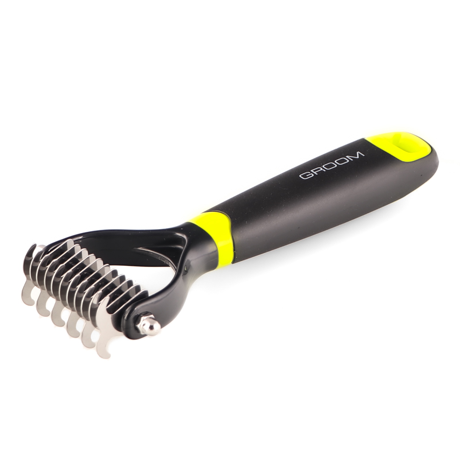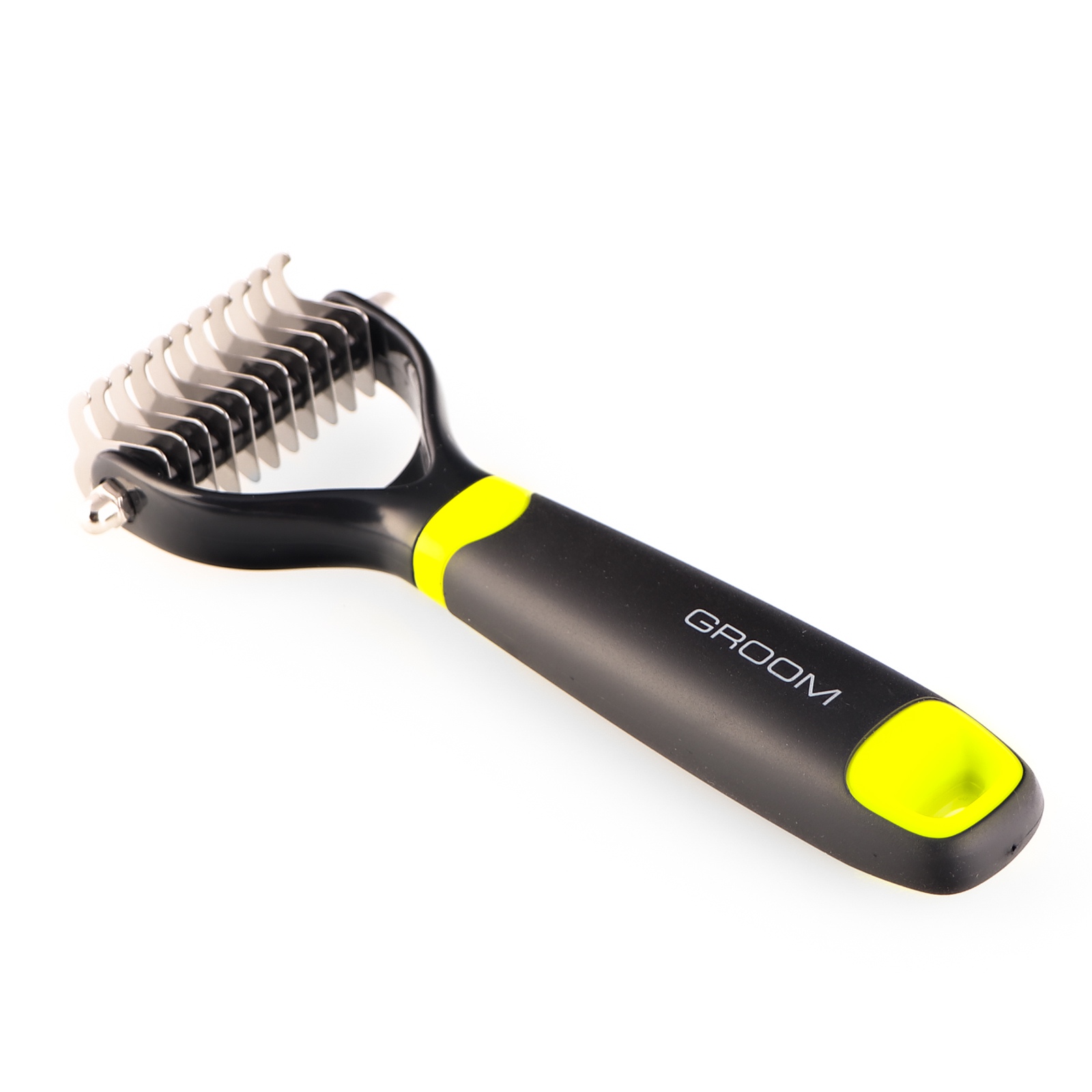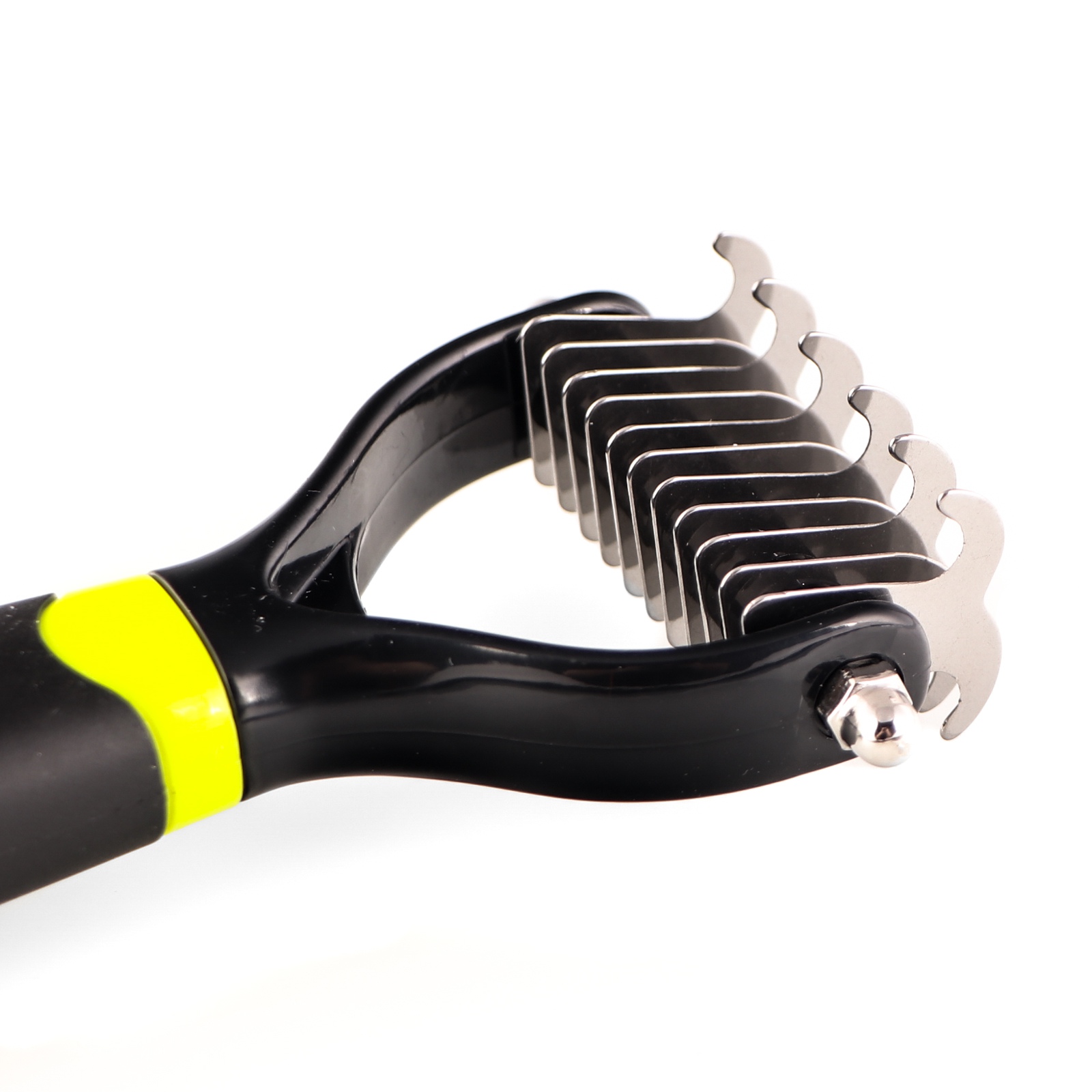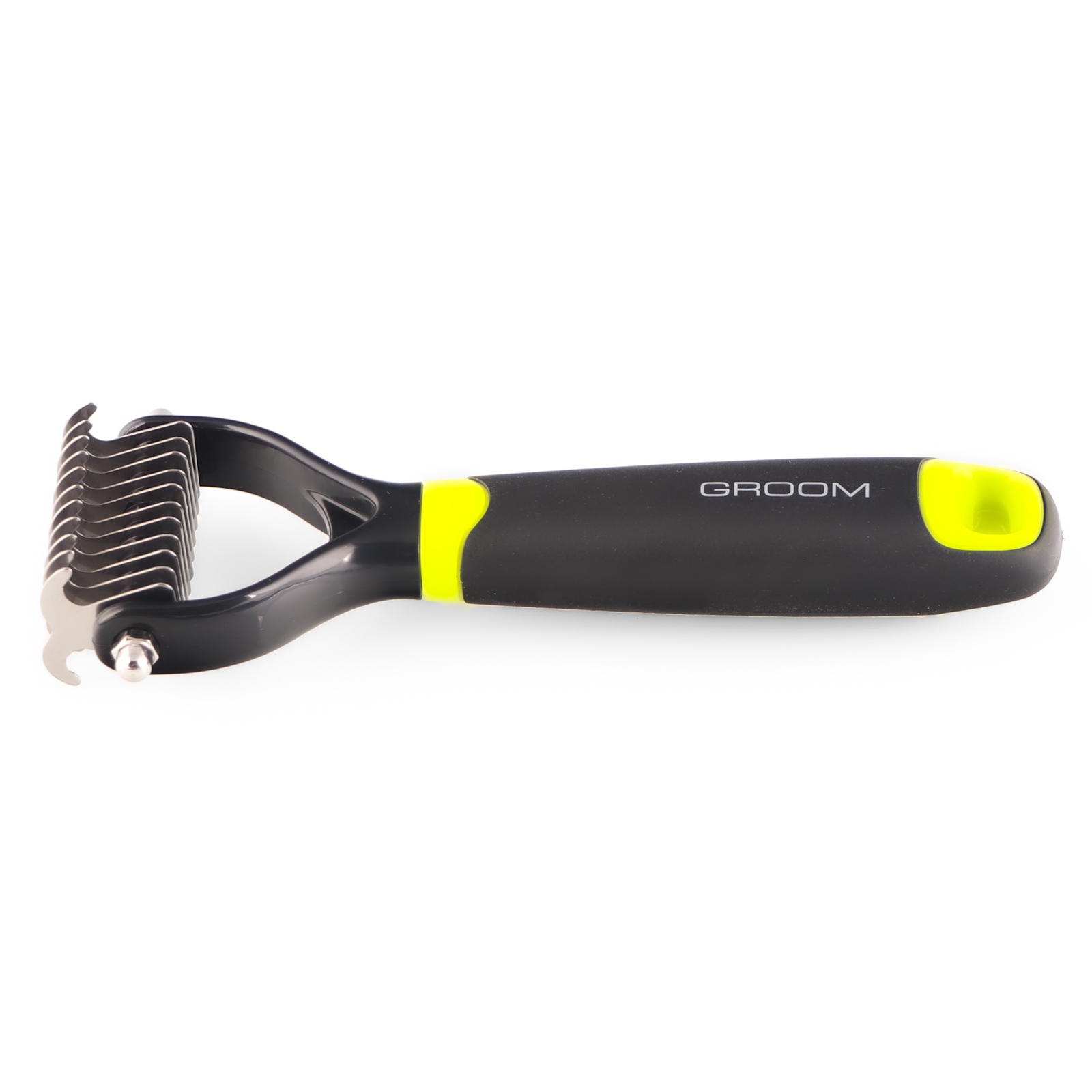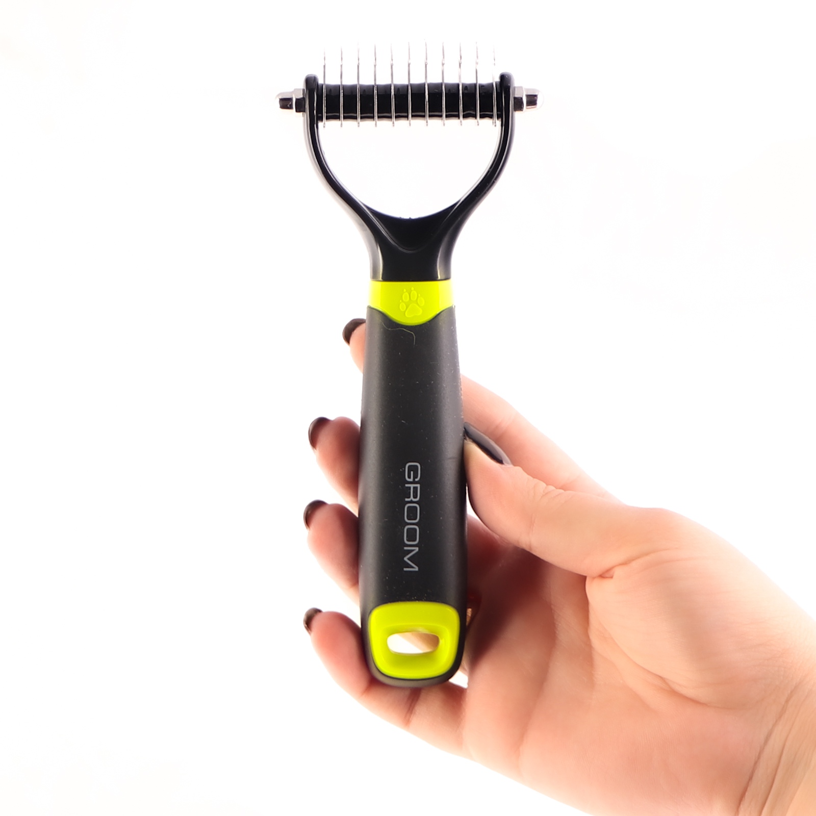 - dwustronny grzebień, który może być używany do rozczesywania, usuwania sierści oraz jako zgrzebło do wyczesywania podszerstka