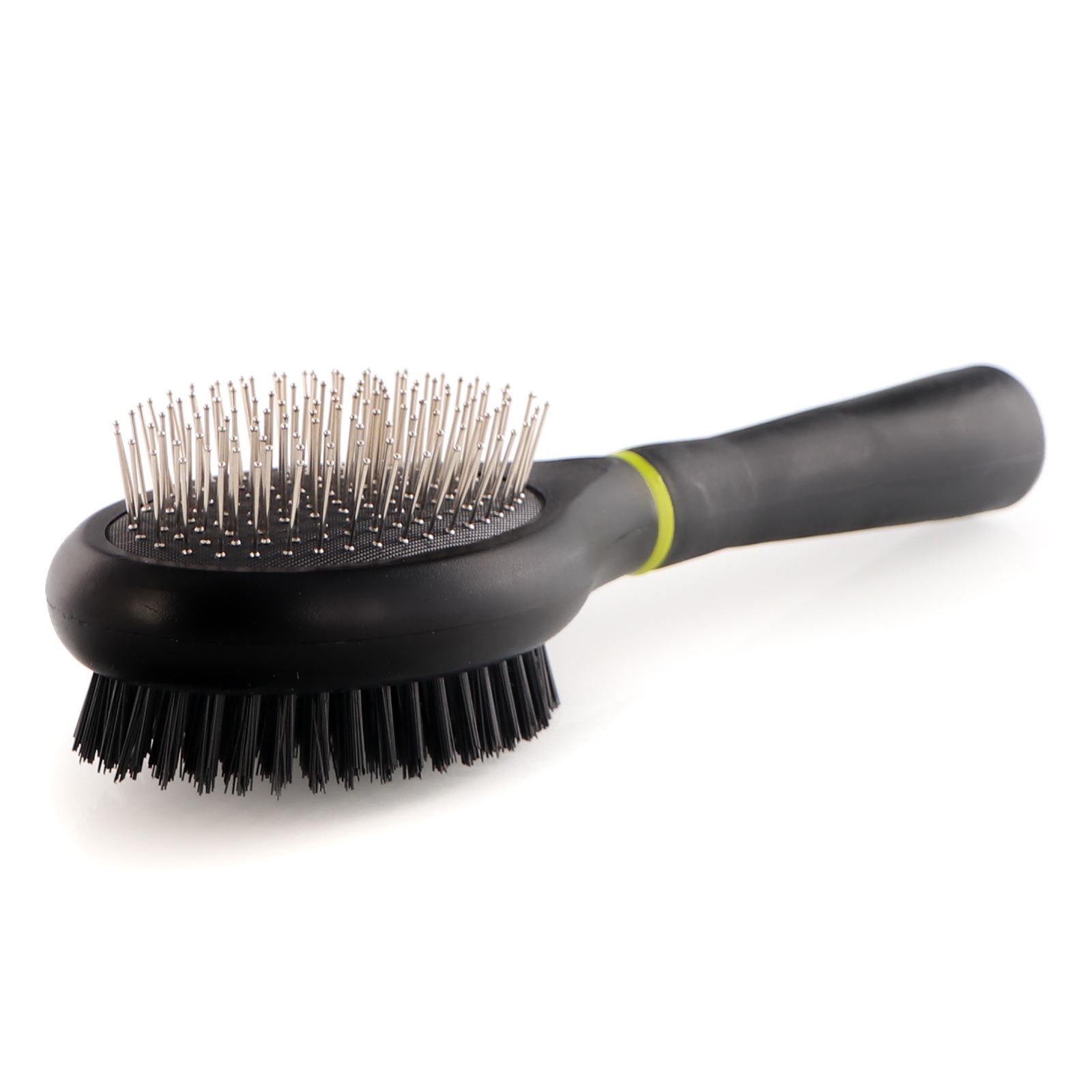 Dzięki praktycznej dwustronnej szczotce możemy skutecznie rozczesać splątane, skołtunione włosy, podczas gdy drugą miękką usunąć luźne i martwe włosy aby utrzymać piękna i zdrową sierść pupila. Dodatkowo naturalny tłuszcz skórny zostanie rozprowadzony po sierści, co sprawi, że będzie ona błyszcząca i zdrowa. Czesanie stanie się bardziej przyjemne dla zwierzęcia.