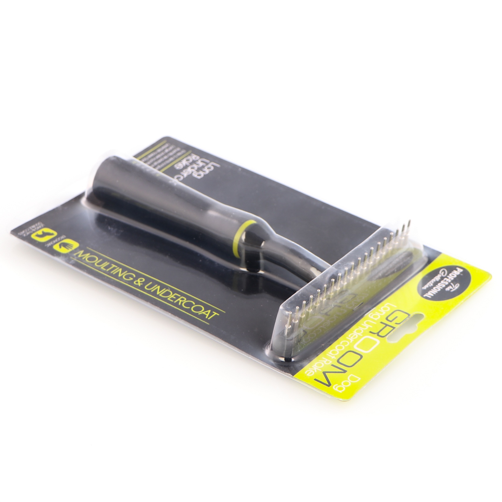 Zgrzebło Groom Long idealne dla psów o grubej i gęstej sierści. Pomaga usuwać splątania, kołtuny i linienie z długiej i gęstej sierści. Idealne do usuwania puszystego i niechcianego podszerstka, aby utrzymać zdrową, czystą i lśniącą sierść Twojego pupila.