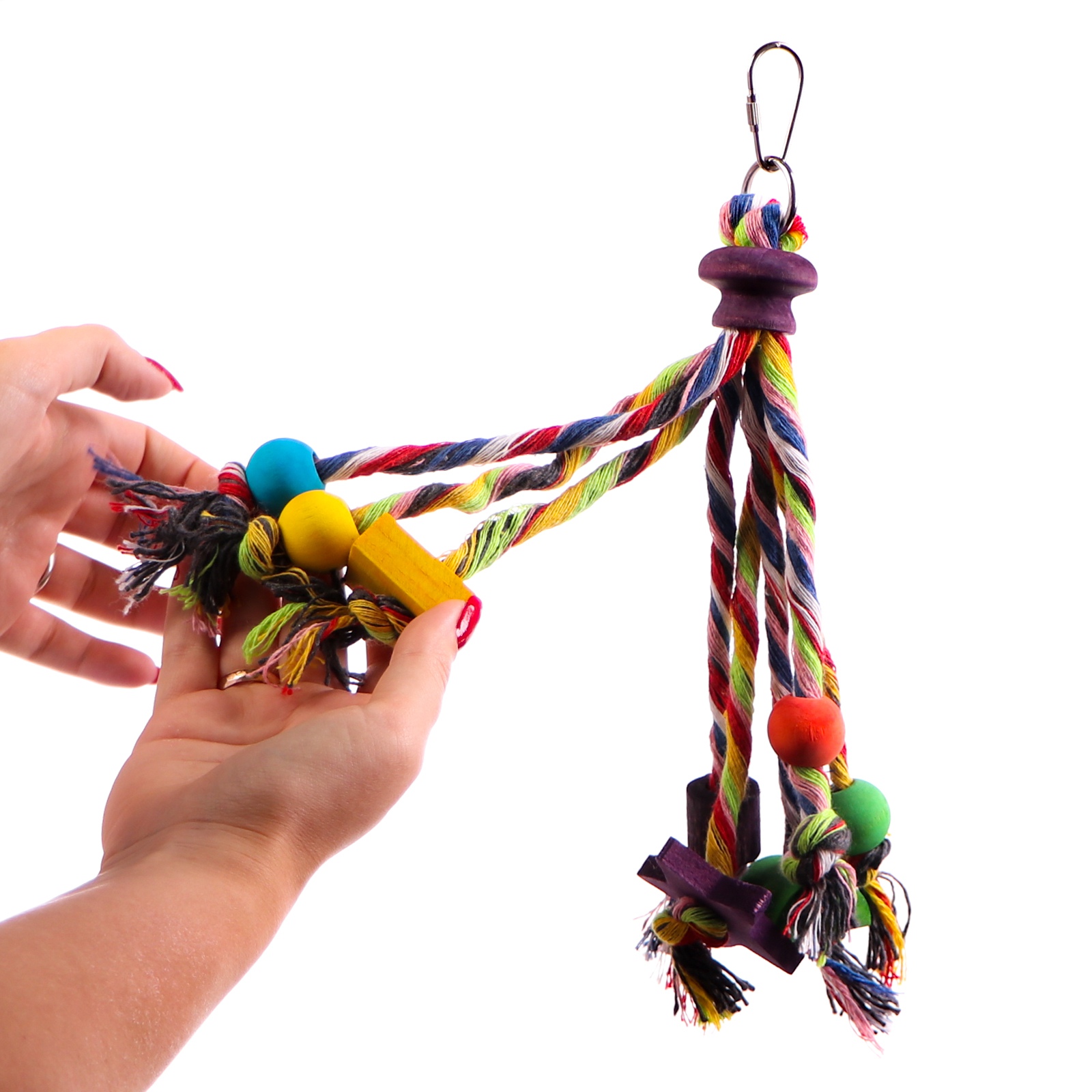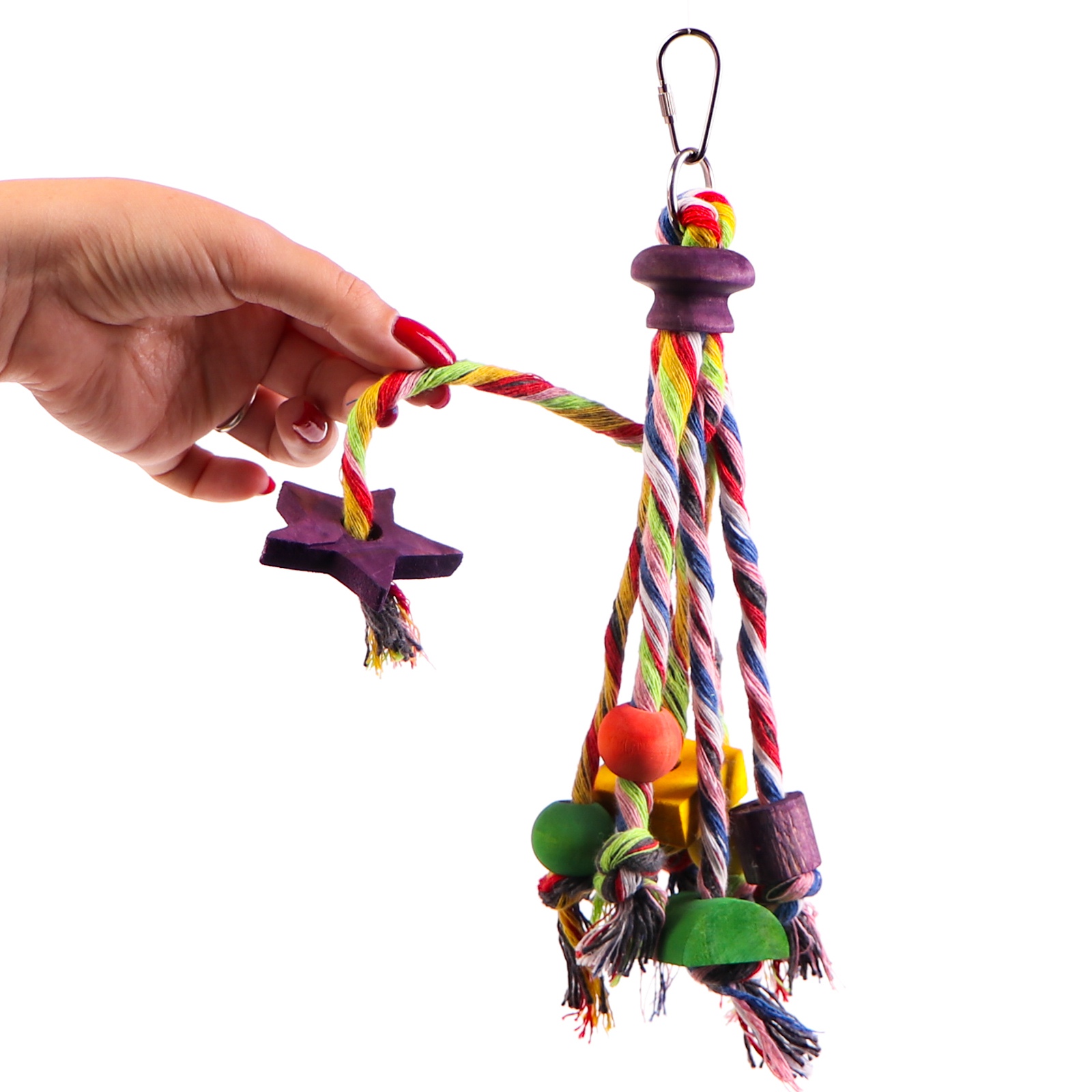 HappyPet Carnival posiada wiele węzłów oraz drewnianych kolorowych elementów aby zachęcić papugę do zabawy. Zabawka zapewni wiele godzin dobrej rozrywki waszej papugi, oraz zapobiegnie niechcianemu wyrywaniu piór.
