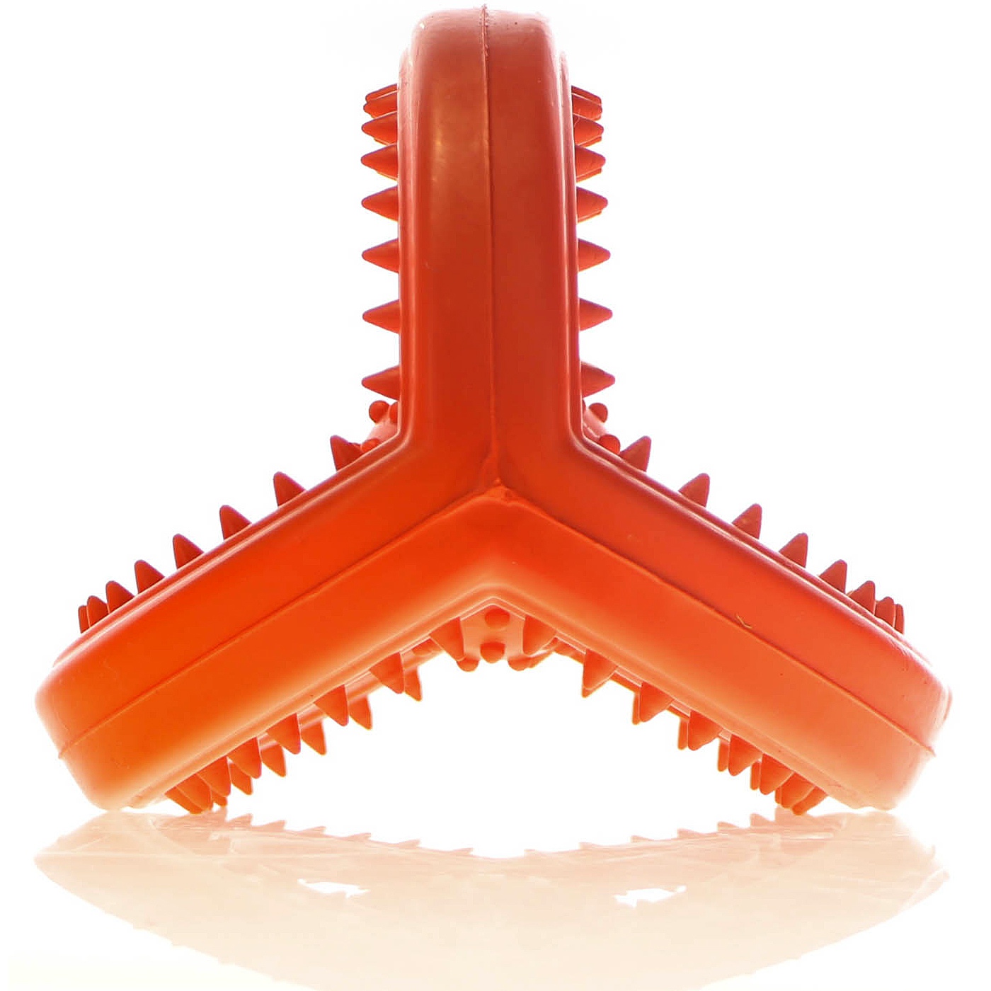 Gumowa piłka dla naszych pupilów zaprojektowana została z myślą o właścicielach aktywnych psów. Wykonana zastała z mocnej odpornej gumy, niewypełniona w środku. Dzięki nieregularnemu kształtowi piłka odbija się w nieprzewidywanym dla psa kierunku, zachęcając go do biegania za piłką. W konstrukcji zabawki są wypustki które podczas zabawy masują dziąsła zwierzaka. Zabawkę można wykorzystać do różnych zabaw z pupilem np. jako aport, gryzak.