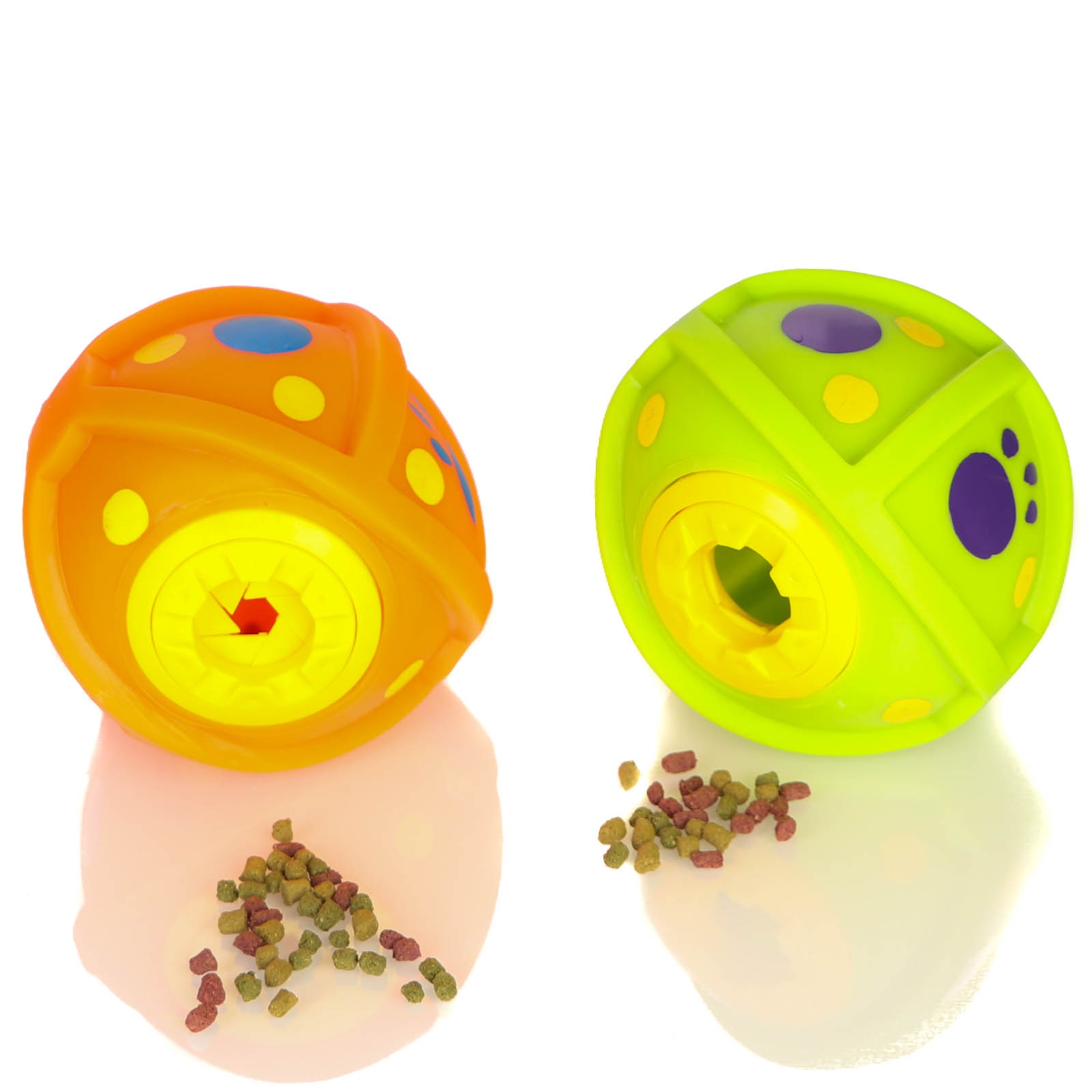 Przed zabawą nie zapomnij napełnić piłki ulubionymi przysmakami Twojego pupila. Podczas zabawy piłka automatycznie wyrzuca przysmak, zachęcając go do zabawy.