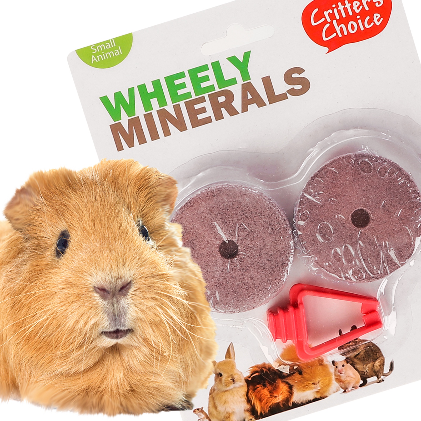 Wheely Mineral został specjalnie opracowany, aby wspierać naturalne zachowanie małych zwierząt podczas gryzienia. Pyszne lizawki mineralne są odpowiednie dla małych zwierząt, takich jak: królików, świnek morskich, chomików i myszoskoczków. Został zaprojektowany w kształcie koła, dzięki czemu można go łatwo przymocować do klatki swojego pupila. Gwarantując mnóstwo zabawy i długie godziny zabawy, zdrowa przekąska z pewnością pomoże uratować Twoje meble i ubrania przed pogryzieniem.