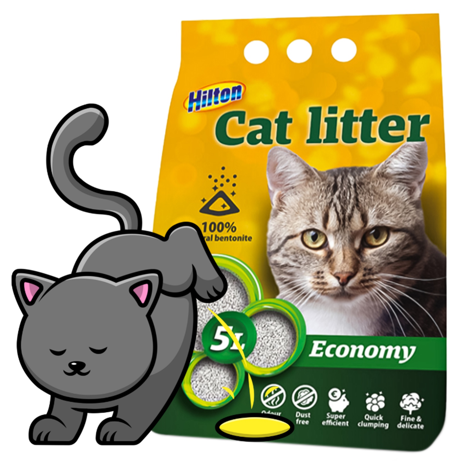Najgorzej jest kiedy chcesz posprzątać kuwetę a tam na dnie jest mokra breja, która przykleja Ci się do łopatki.. tak znamy to. Żwirek HILTON szybko osusza to co do niego wpadnie, nawet jeśli jest tego dużo. Kotek zakopuje co pozostawił, a żwirek zaczyna działać. Już po chwili kocie pozostałości są suche i łatwo da się je wykopać za pomocą zwykłej łopatki.