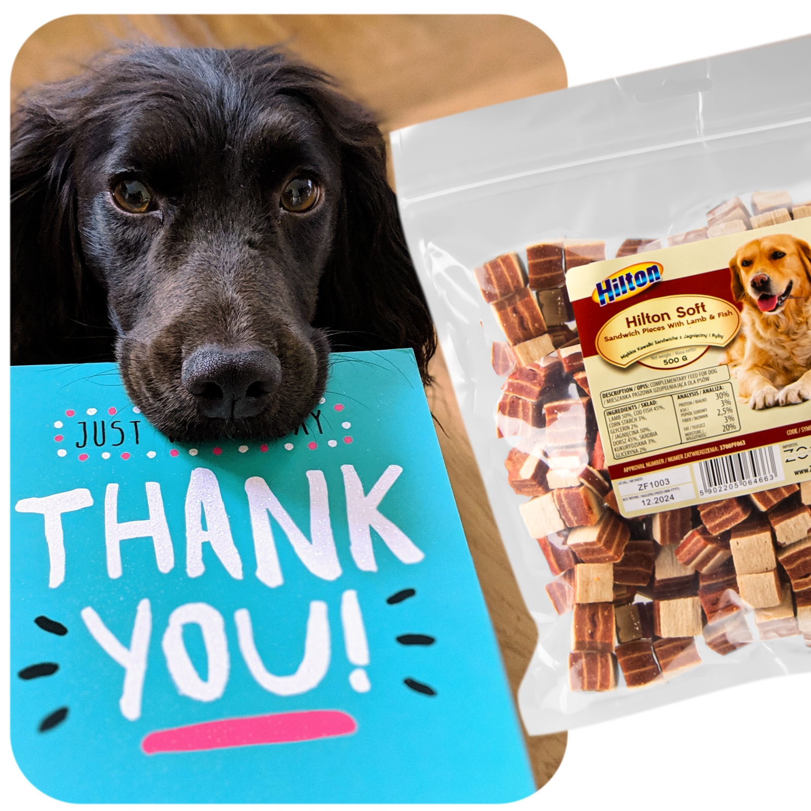 Kawałki "sandwicze" z jagnięciny i ryby Hilton to lekko podsuszone mięso, które zachowuje na długo swoją świeżość dzięki szczelnie zamykanemu opakowaniu. A ty zawsze masz pewność, że dajesz psiakowi soczysty i słodziutki kawałek prawdziwego mięsa.