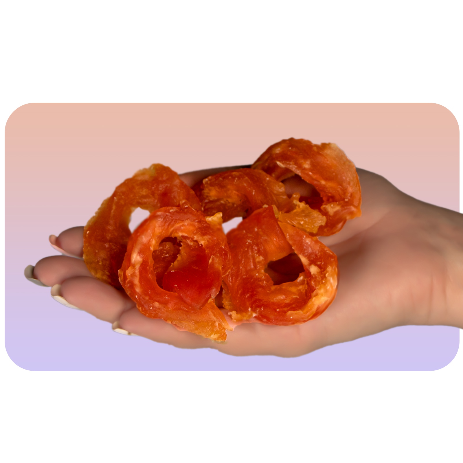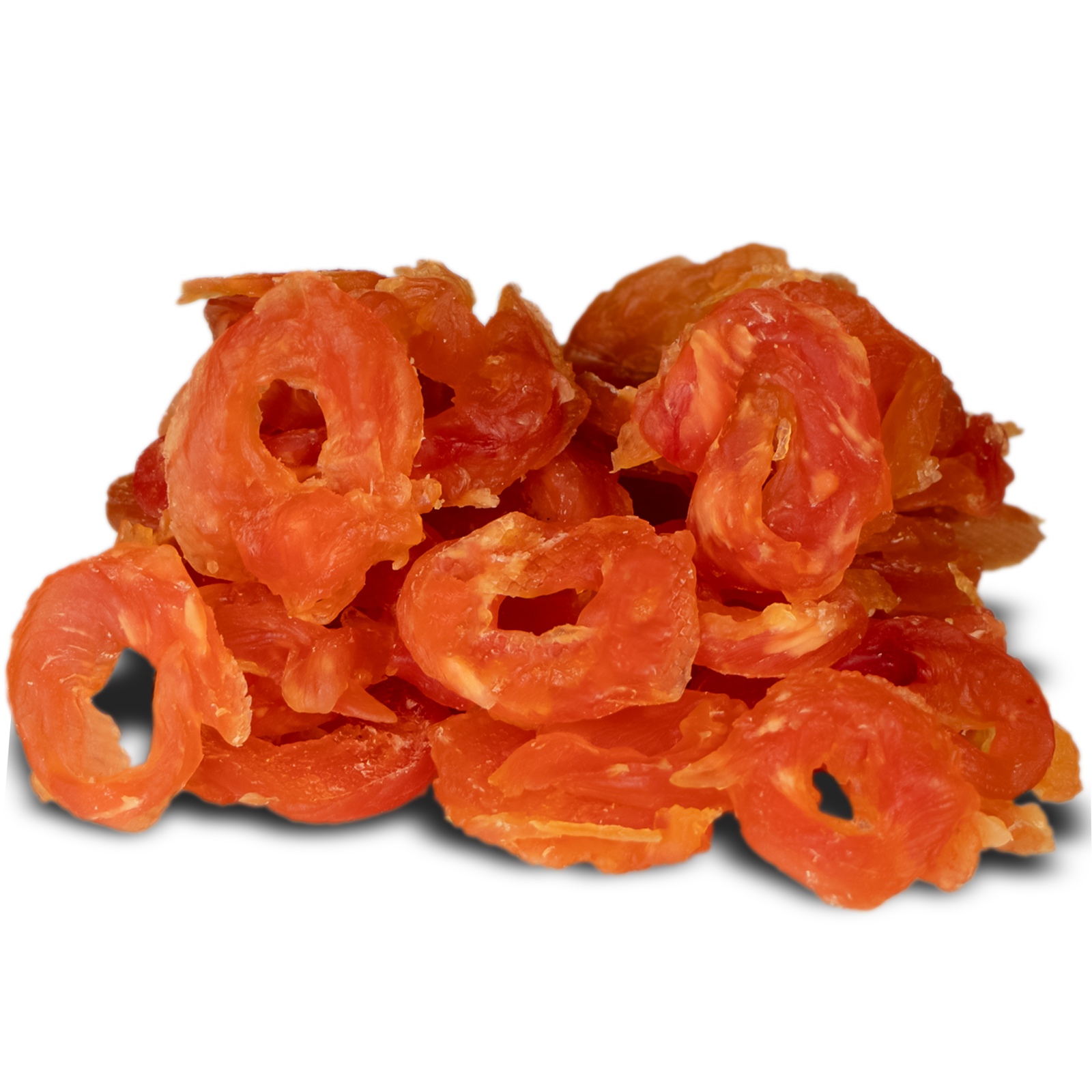 Mięsne krążki to lekko podsuszone mięso, które zachowuje na długo swoją świeżość dzięki szczelnie zamykanemu opakowaniu. A ty zawsze masz pewność, że dajesz psiakowi soczysty i słodziutki kawałek prawdziwego mięsa.