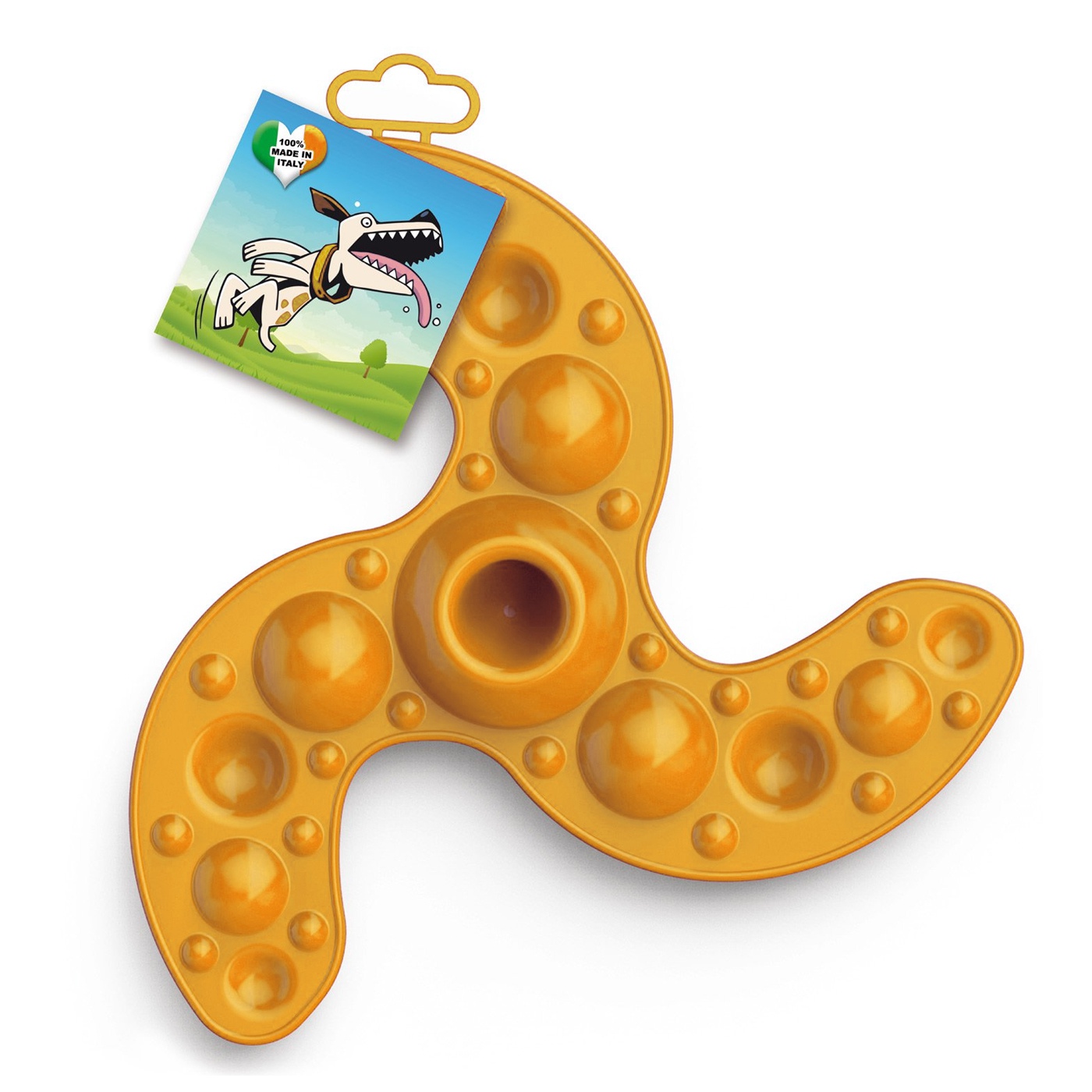 Ninja Fresbee wykonane jest z elastycznego plastiku. Dlatego, nie złamie się upadając na ziemię czy będąc gryzione przez psiaka.