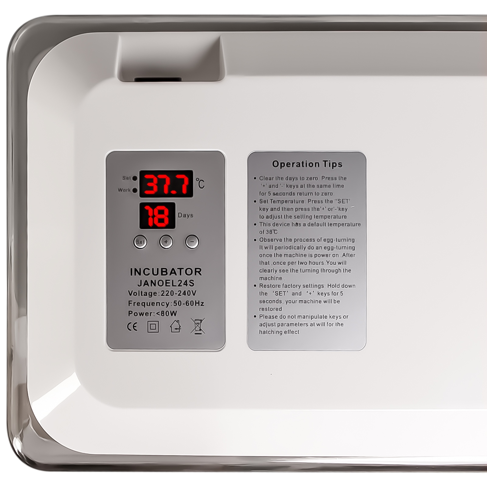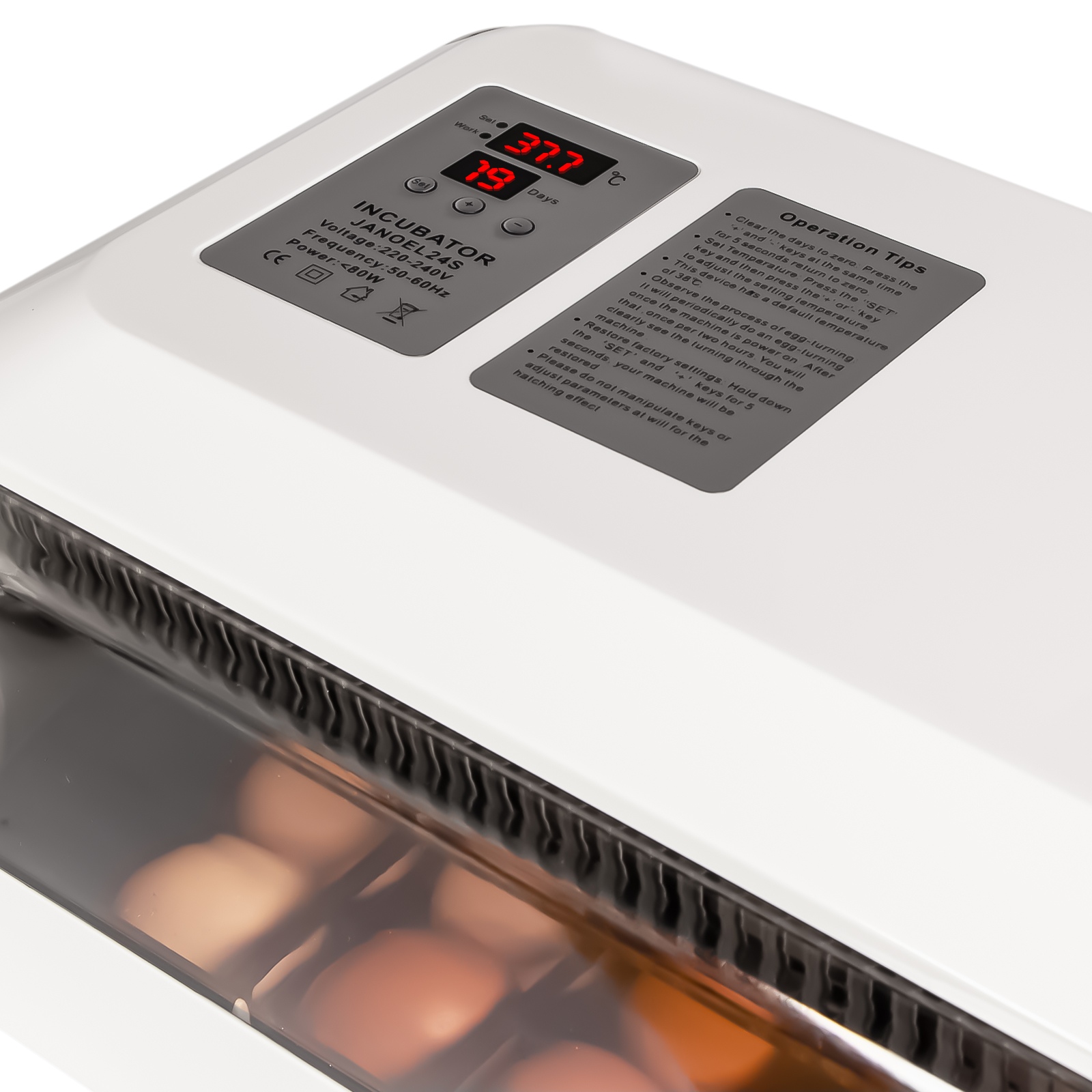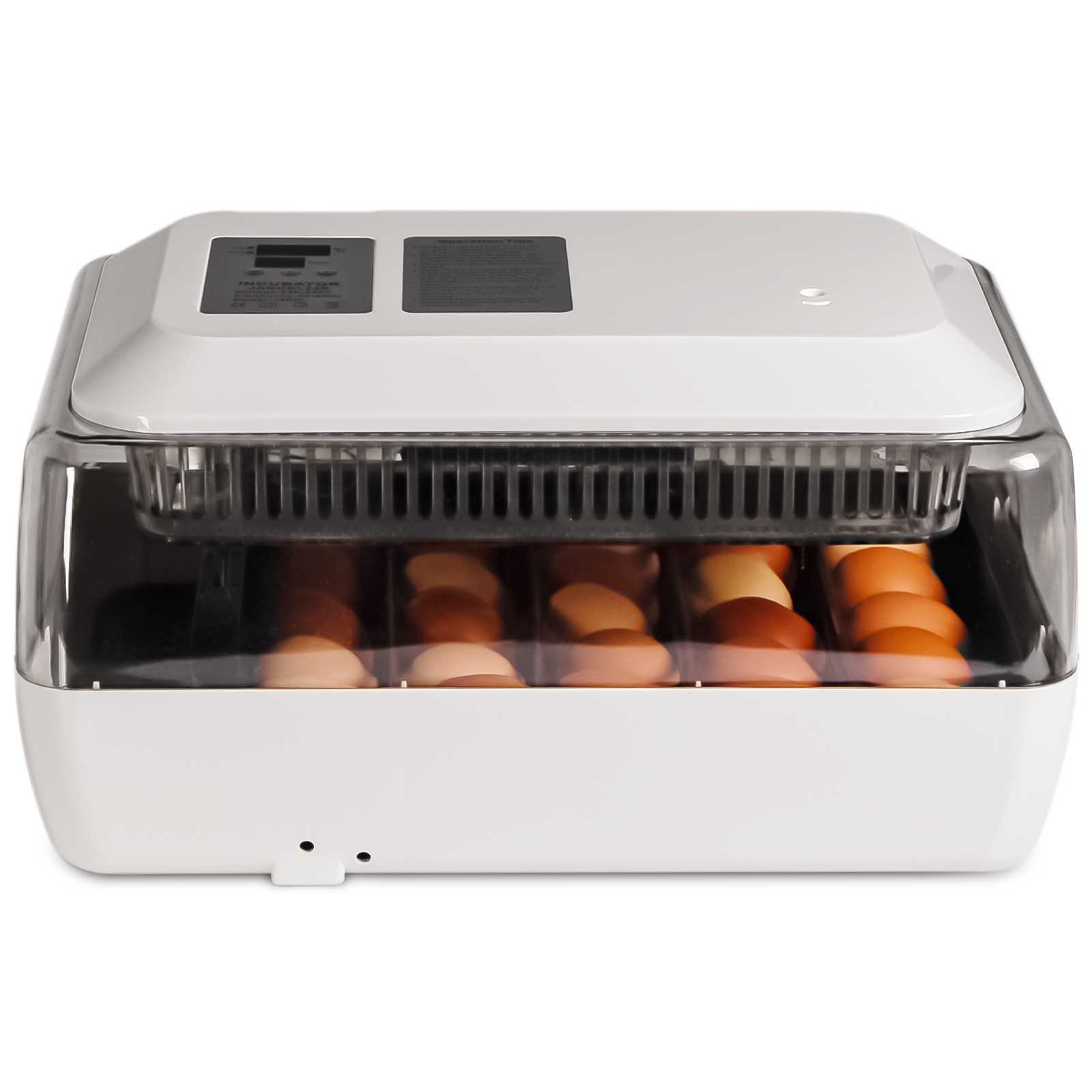 Sprzęt spełnia wszystkie wymagania jakich mogą oczekiwać użytkownicy i co najważniejsze wylęgające się ptaki lub gady. Jajka łatwo umieścisz wewnątrz, a dzięki transparentnej obudowie zawsze możesz podejrzeć proces inkubacji. Szybko zaprogramujesz odpowiednią temperaturę, a wbudowany termostat będzie ją samoczynnie utrzymywać.