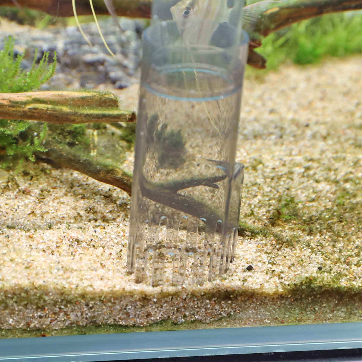 - Automatyczne urządzenie zasysające: Wytworzenie ssania przez strumień wody z kranu (także jeżeli umywalka stoi wyżej niż akwarium). Czyszczenie trudno dostępnych miejsc za pomocą odmulacza: Okrągły przekrój z narożnikiem