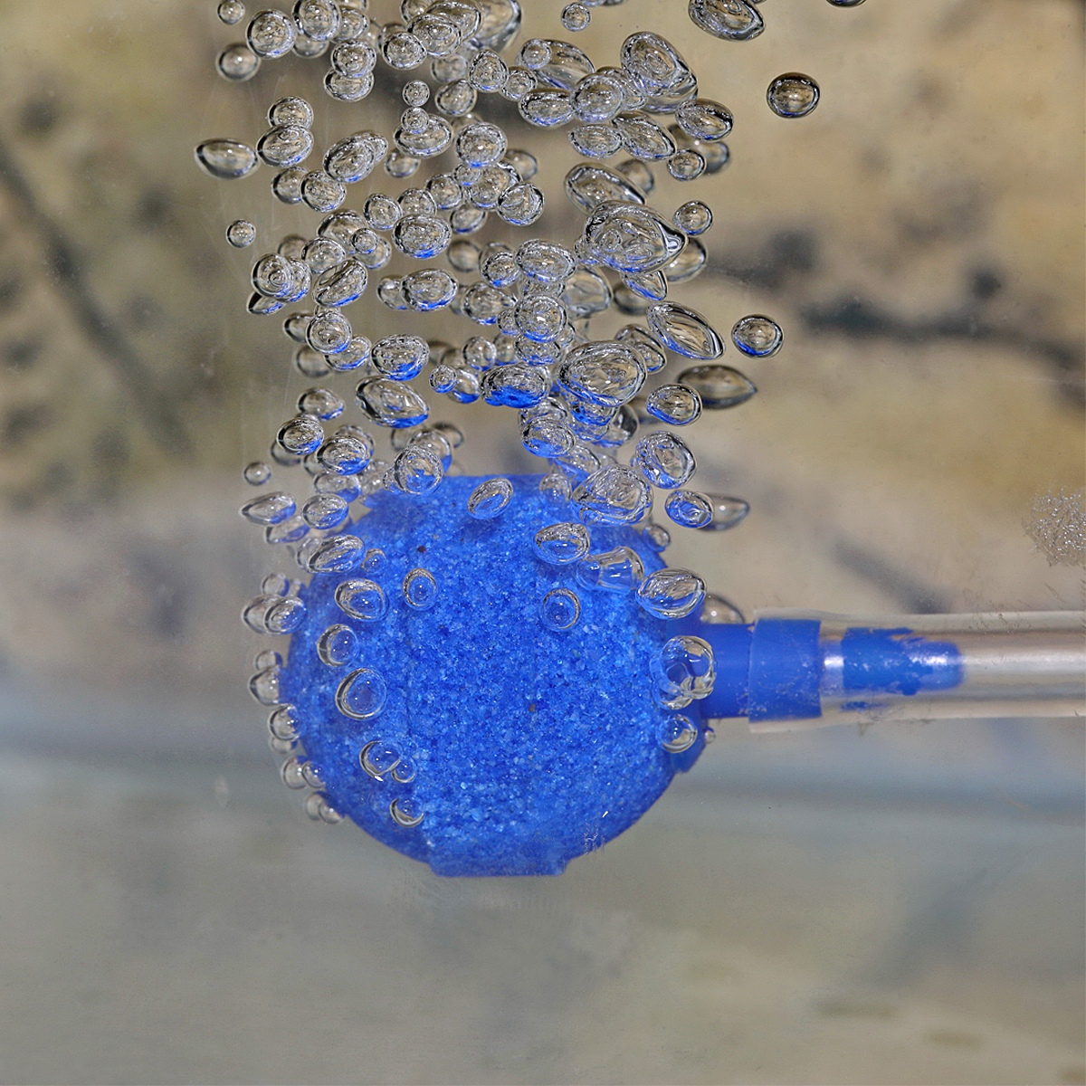 Połączyć wąż z pompką powietrza. Wąż powietrza odciąć i zamontować zawór zwrotny. Pozostały wąż przyciąć do potrzebnej długości. Połączyć koniec z zaworem zwrotnym i drugi koniec z kamieniem. Pompkę zamontować możliwie na suchej ścianie w pobliżu akwarium. W zestawie haki do zawieszenia. Ustawić wylot powietrza.