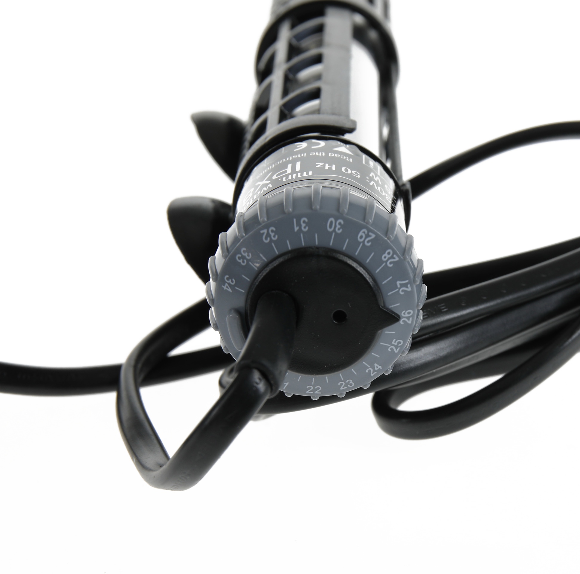 Umieszczenie w ochronnym koszyku zapobiega poparzeniu się ryb. Grzałka jest wodoszczelna, możliwość zanurzenia do 100 cm i jest bardzo stabilna dzięki 2 mm bezpiecznemu szkłu kwarcowemu. Jeżeli der poziom wody spada lub grzałkę wyjmuje się z wody, zabezpieczający automatyczny wyłącznik cieplny chroniąc przed przegrzaniem, odcina dopływ prądu. Grzałka ma Certyfikat TÜV.