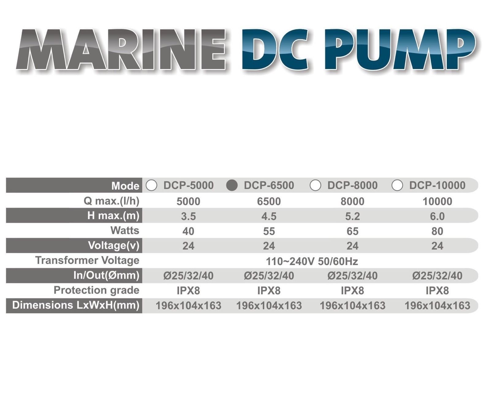 - możliwość pracy poza wodą jako pompa przepływowa (bez zanurzenia w wodzie)