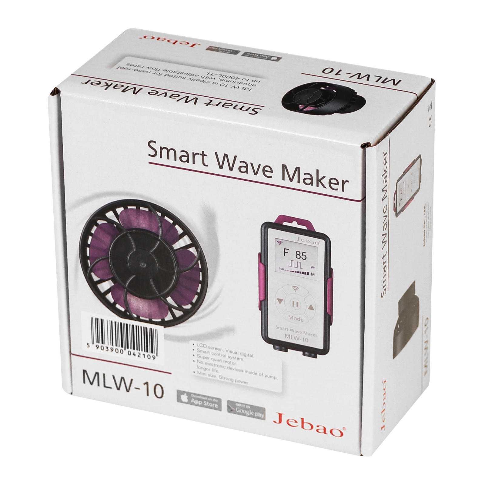 Nowa seria pomp MLW producenta Jebao/Jecod zapewnia prawie bezgłośną i energooszczędną pracę. Jej płaska konstrukcja umożliwia bezawaryjną pracę w trybie falowania, jednocześnie wpływając na atrakcyjny wygląd zbiornika. To ogromna siła ukryta w niewielkim rozmiarze. Jebao MLW-10 Smart Wave Maker to super mała, energooszczędna i prawie bezgłośna pompa cyrkulacyjna z kontrolerem wyświetlacza LCD, która została stworzona do użytku w akwarium typu nano-reef z regulowanym przepływem do 4000 l/h. Zastosowanie najnowszej technologii w cyrkulatorze zapewnia odpowiedni ruch wodny w akwarium typu morskiego. Falownik posiada możliwość sterowania aplikacją w telefonie, co czyni go niezwykle nowoczesnym i zapewnia łatwość użycia.