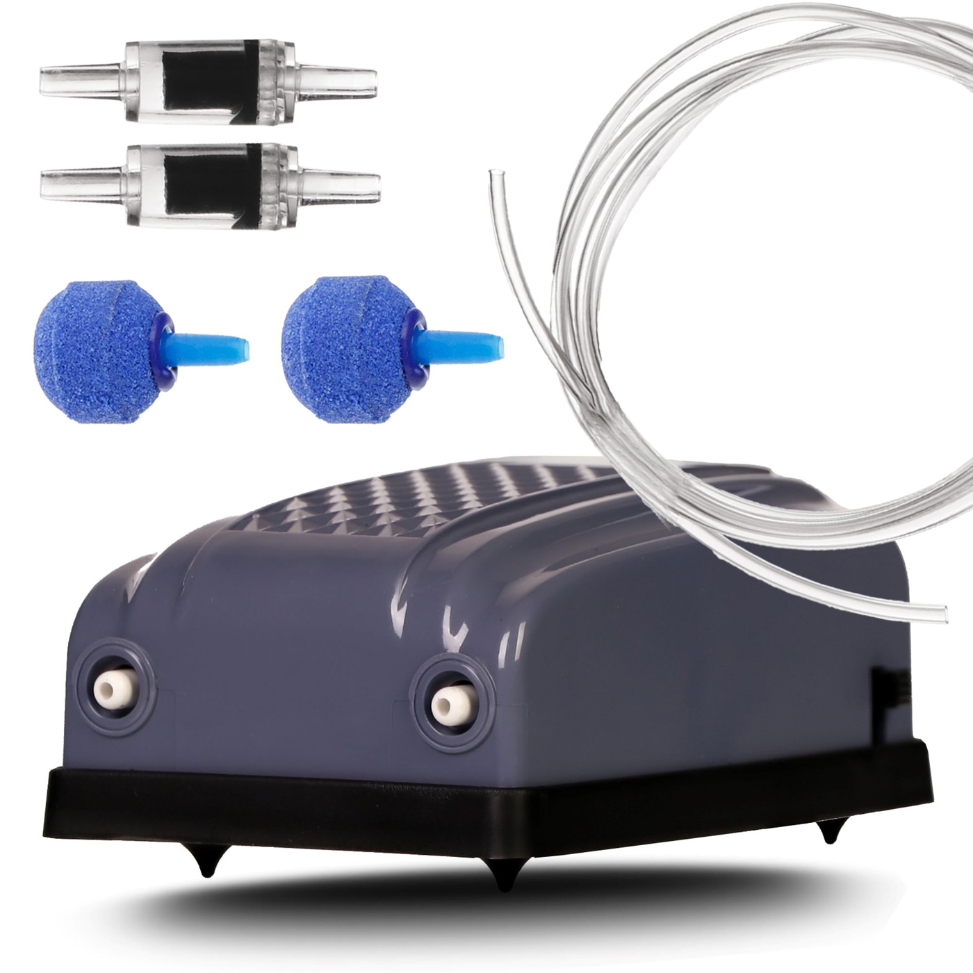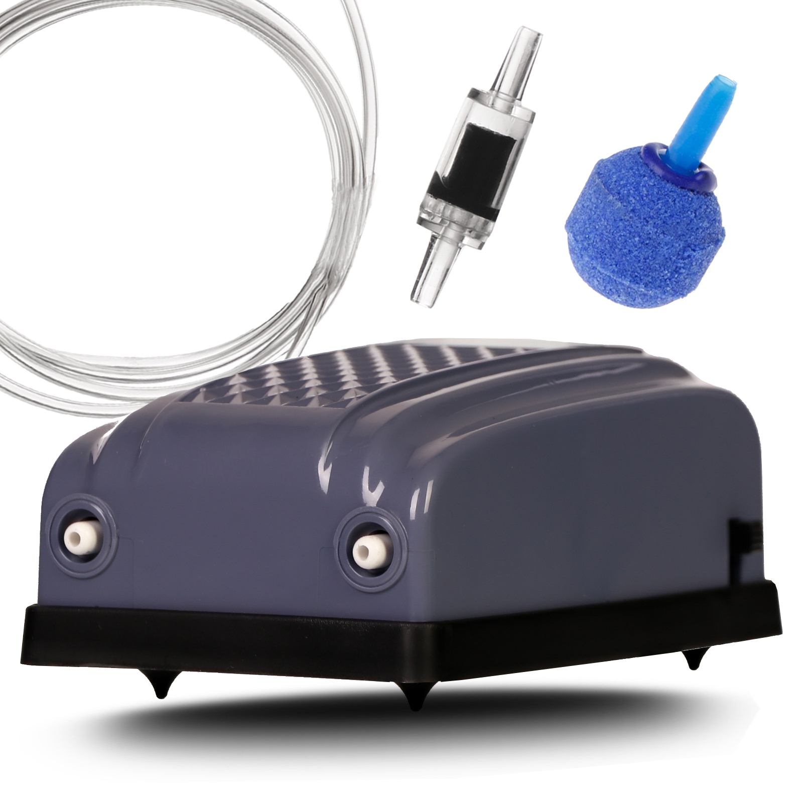 Pompa posiada dwa wyjścia, co umożliwia podłączenie dwóch kamieni napowietrzających. Takie rozwiązanie pozwala na wykorzystanie napowietrzacza w dwóch zbiornikach akwarystycznych.